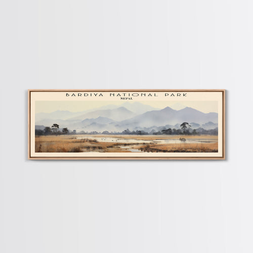 Bardiya National Park Retro Style Travel Poster - Framed Canvas Print - COUNTRY Travel Decor, Vintage Style Home Decor - Travel Print - Wall Art