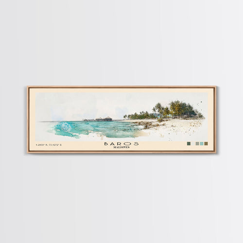 Baros, Maldives Panoramic Print, Vacation Gift, Maldives Wall Art, Beach Painting, Beach Decor, Large Wall Art, Wood Frame Art