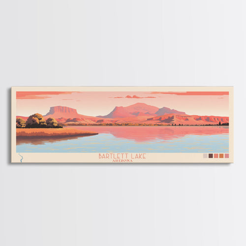 Bartlett Lake Arizona Framed Canvas Print, Panoramic Wall Art, Midcentury Modern, Pop Art, Travel Poster, Scenic Bedroom Art