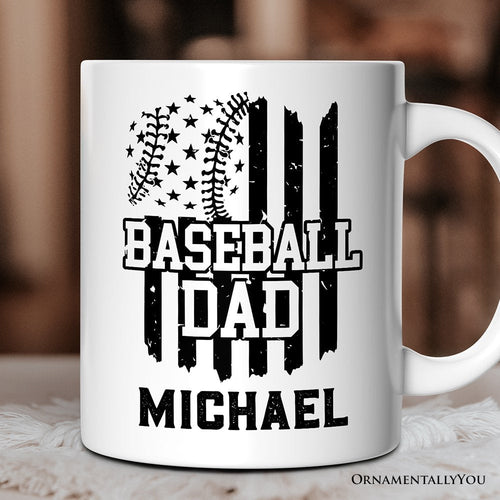 Baseball Dad Personalized Mug, Patriotic Gift for Sports Fathers with Custom Name