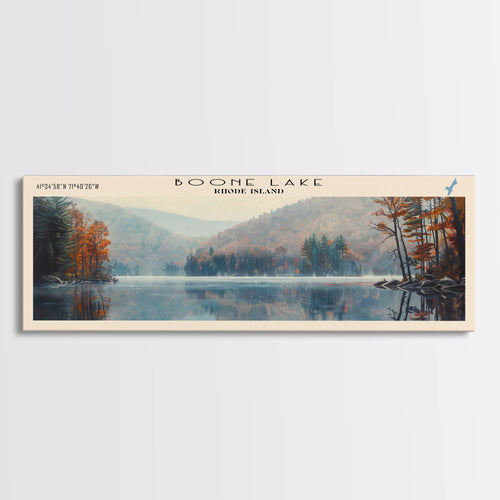 Boone Lake Rhode Island Framed Canvas Print, Panoramic Travel Poster, Midcentury Modern Wall Art, Pop Art, Nature Bedroom Decor, Scenic Lake House Art