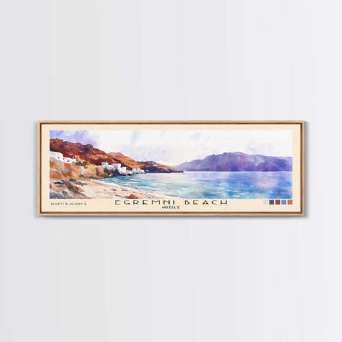 Egremni Beach, Greece Panoramic Beach Print, Vacation Gift, Greece Wall Art, Framed Canvas Print, Framed Beach Painting