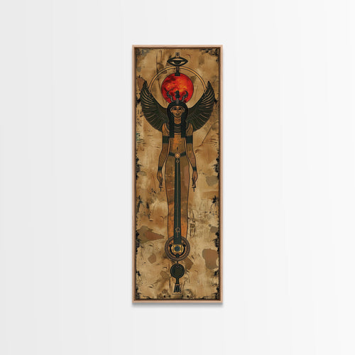 Egyptian Art Depiction of Goddess Isis - Framed Canvas Print, Midcentury Modern Wall Art, Skinny Art, Tall Art, Living Room Decor