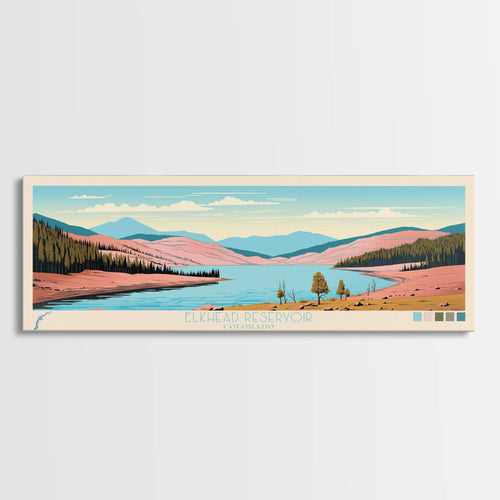 Elkhead Reservoir Colorado Framed Canvas Print, Panoramic Art, Midcentury Modern, Pop Art, Living Room Decor, Travel Poster, Lake View