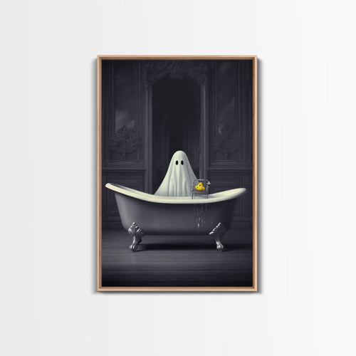 Ghost Bathroom Canvas, Dark Romantic Ghost Standing in Bathroom Creepy, Ghost in the Bath tub Wall Art Halloween Canvas, Funny Halloween