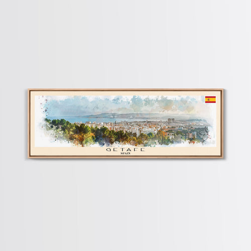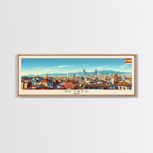 Getafe Spain Panoramic Travel Poster, Framed Canvas Print or Metal Wall Art, Travel Art, Home Decor, Panoramic Painting, Midcentury Art