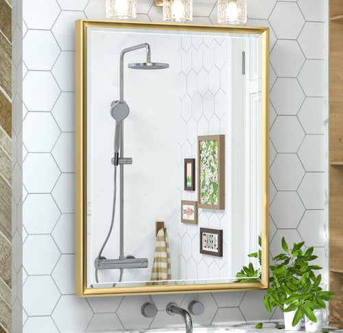 TokeShimi 20x26 Recessed Medicine Cabinet Bathroom Vanity Mirror Gold Metal Framed Surface Wall Mounted with Aluminum Alloy Beveled Edges Design 1 Doo