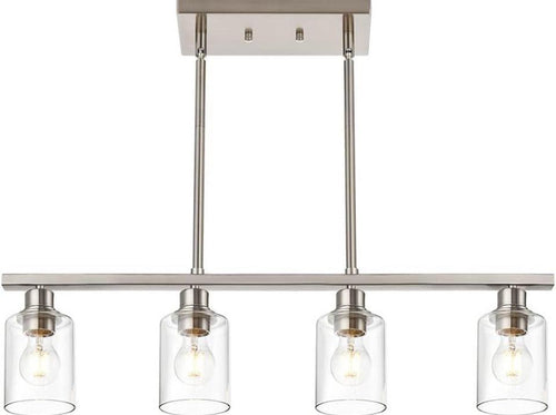 VINLUZ 4 Light Kitchen Island Hanging Lights Industrial Brushed Nickel Dining Room Light Fixture with Clear Glass Shade Farmhouse Chandelier for Livin