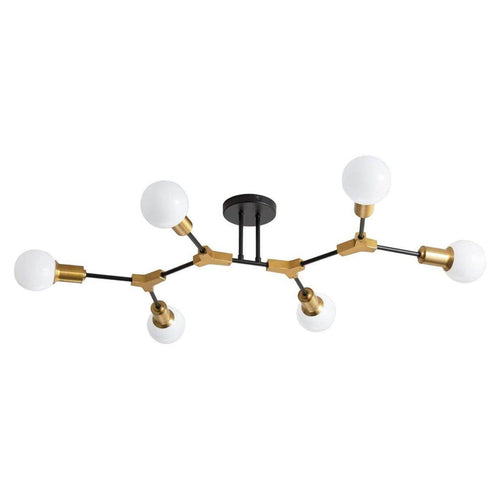 Epinl Modern Sputnik Light Fixture 6-Lights Chandelier Black and Gold Chandelier Metal Semi Flush Mount Ceiling Light for Bedroom Living Room Hallway.E26 Socket