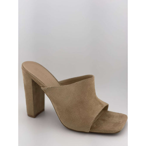 Bella Marie Women's Strappy Pump Block Taupe Suede High Heels