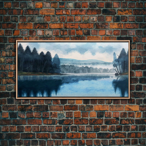 Blue Springs Lake Missouri Framed Canvas Print, Lake House Art, Panoramic Scenic View, Travel Poster, Minimalist Art, Lake Painting
