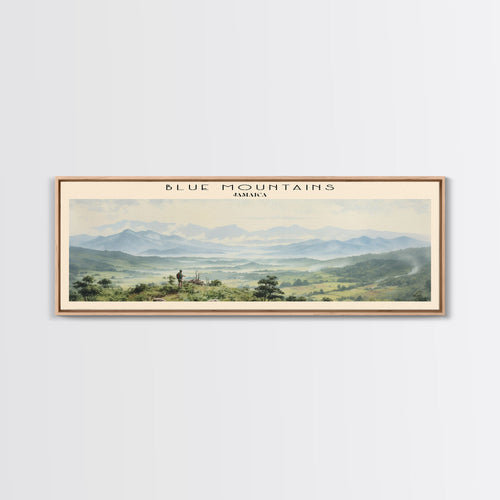 Blue Mountains Travel Print Wall Art, Travel Poster Print, Retro Style COUNTRY Home Decor, Wall Hanging, Travel Gift Idea, Unique Metal Art