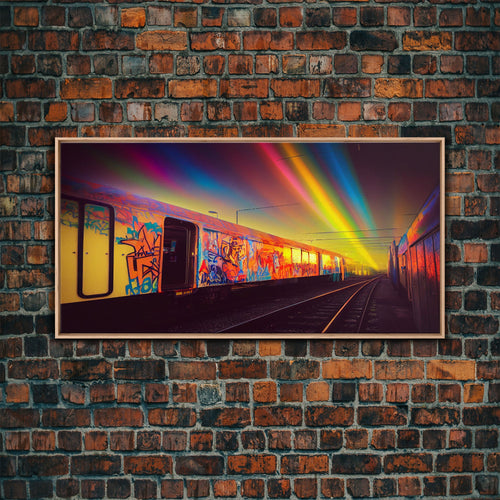 Box car graffiti art, wall decor, train box car, ready to hang canvas print wall art, rainbow train wall art