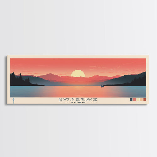 Boysen Reservoir Wyoming Framed Canvas Print, Panoramic Travel Poster, Midcentury Modern Wall Art, Pop Art, Nature Bedroom Decor, Scenic Lake House Art