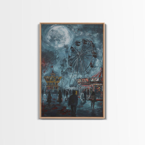 • Eerie Carnival, Halloween Art, Spooky Wall Decor, Framed Canvas Print, Creepy Art, Halloween Wall Decor, Seasonal Wall Art, Scary Artwork