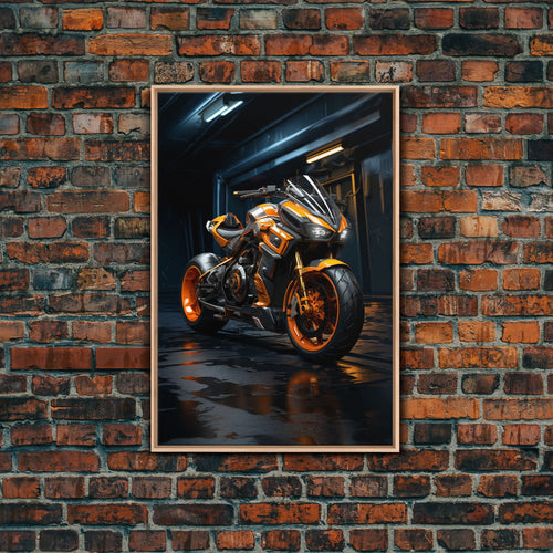 Futuristic Cyberpunk Motorcycle Concept Art, Sport Bike Canvas Print