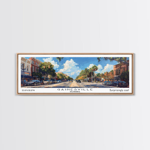 Gainesville Florida Panoramic Painting, Mid Century Modern Framed Canvas Print, Retro Pop Art Travel Poster, Home Wall Decor