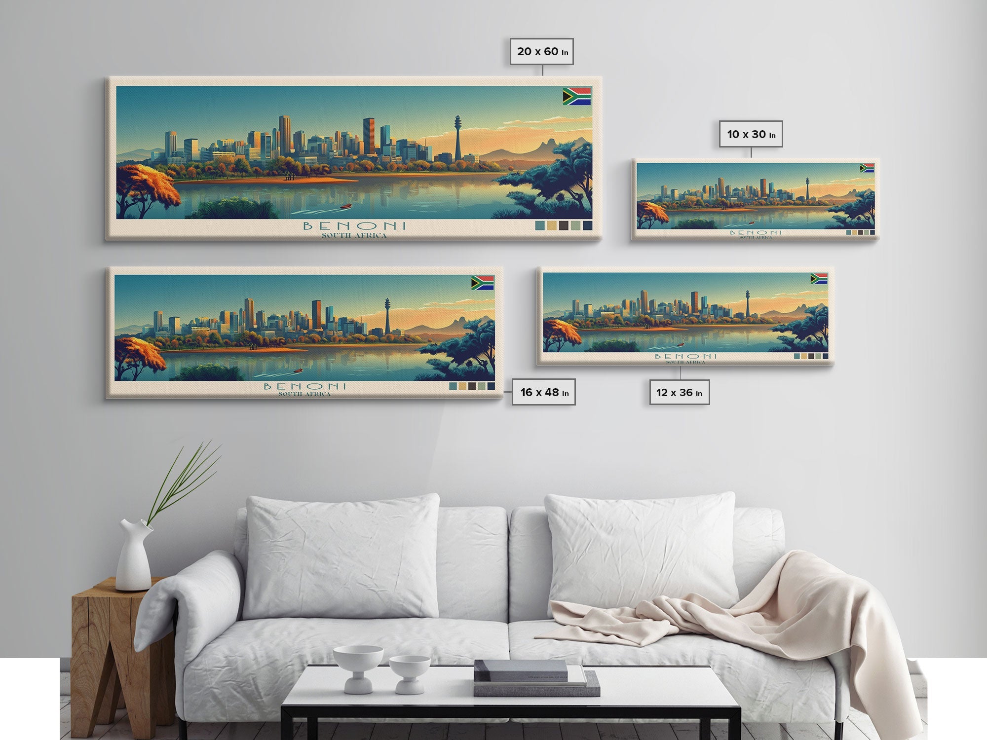 Benoni, South Africa Panoramic Travel Poster Canvas Print, Benoni, South Africa Painting, South Africa Art, Benoni Travel Art, Living Room Painting