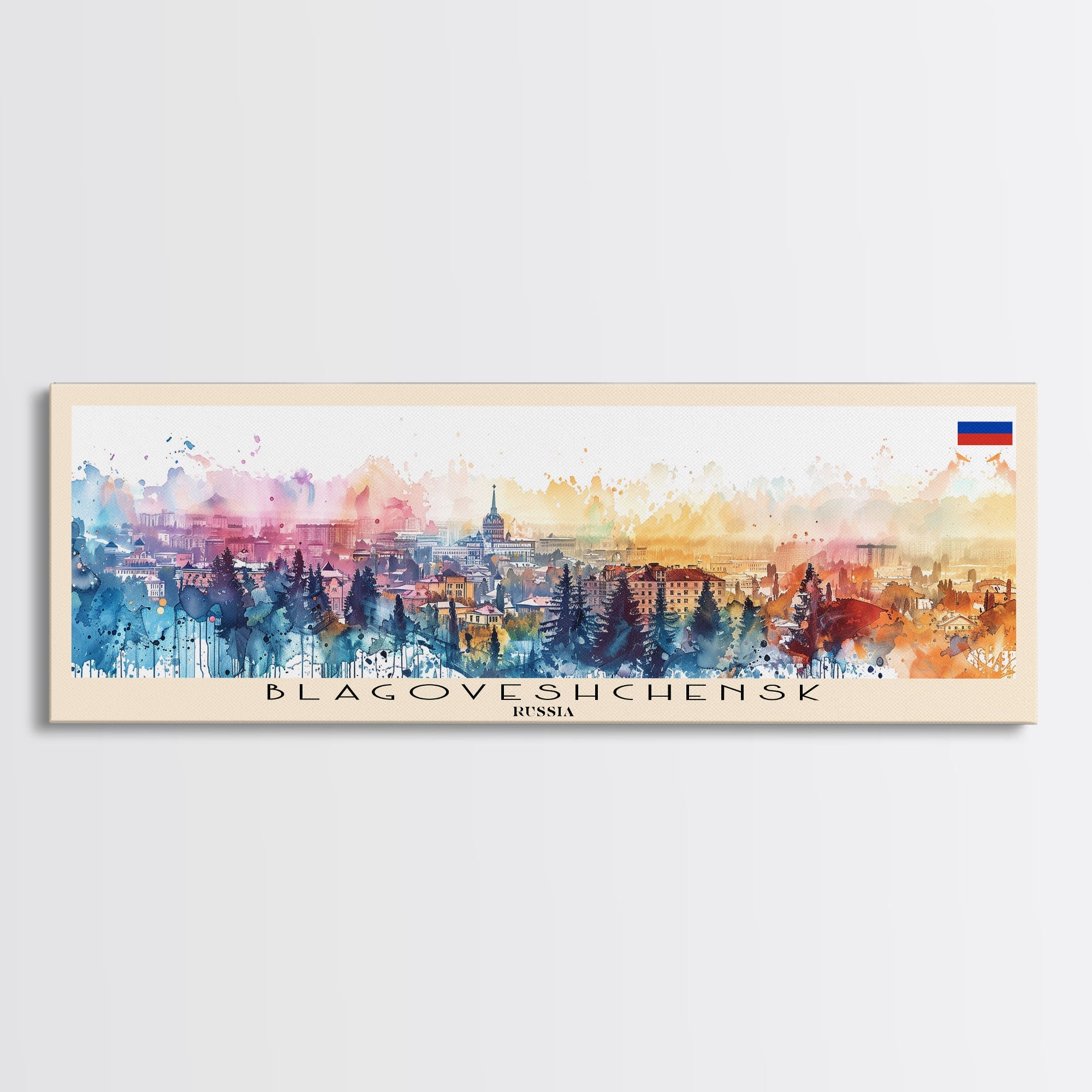 Blagoveshchensk Russia Travel Art, City Art, Framed Canvas Print or Metal Wall Art, Europe Travel Poster, Panoramic Wall Art, Extra Wide Wall Art