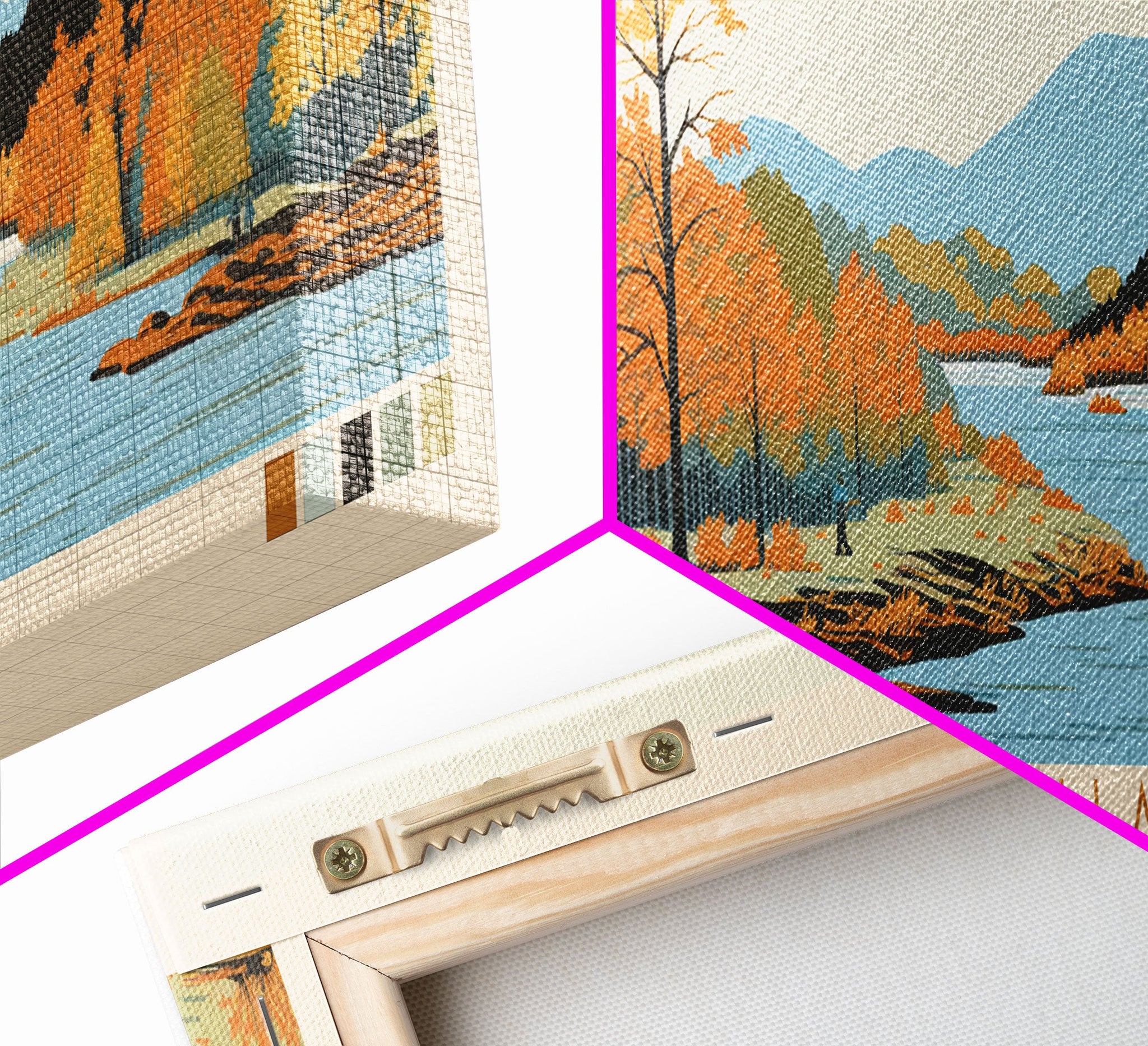 Blairs Valley Lake Maryland Framed Canvas Print, Panoramic Travel Poster, Midcentury Modern Wall Art, Pop Art, Nature Bedroom Art, Scenic Lake House Decor