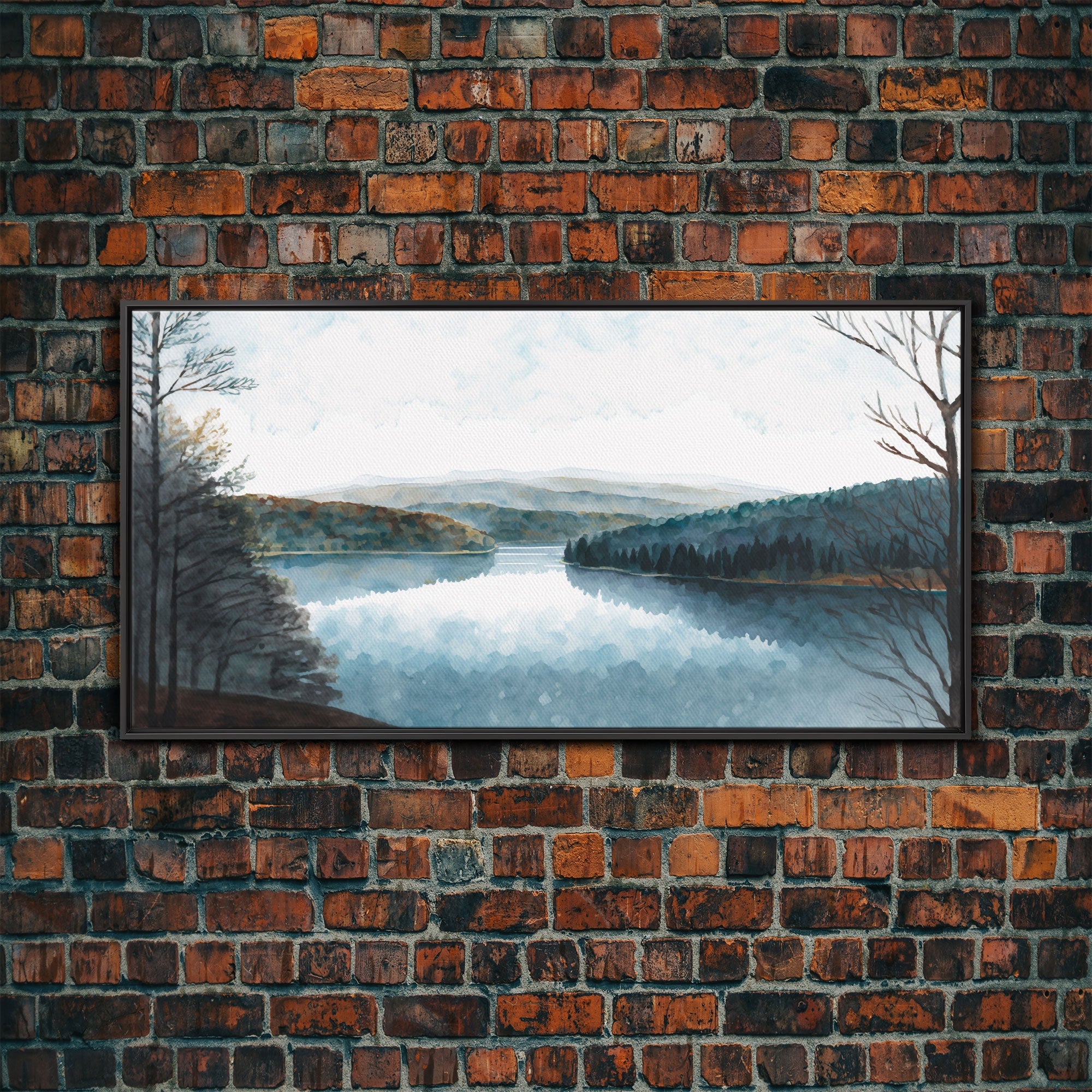 Blue Lake Art | Framed Canvas Print | Blue Lake Painting | Lake House Decor | Guest Room Landscape Painting | Detroit Lake Painting