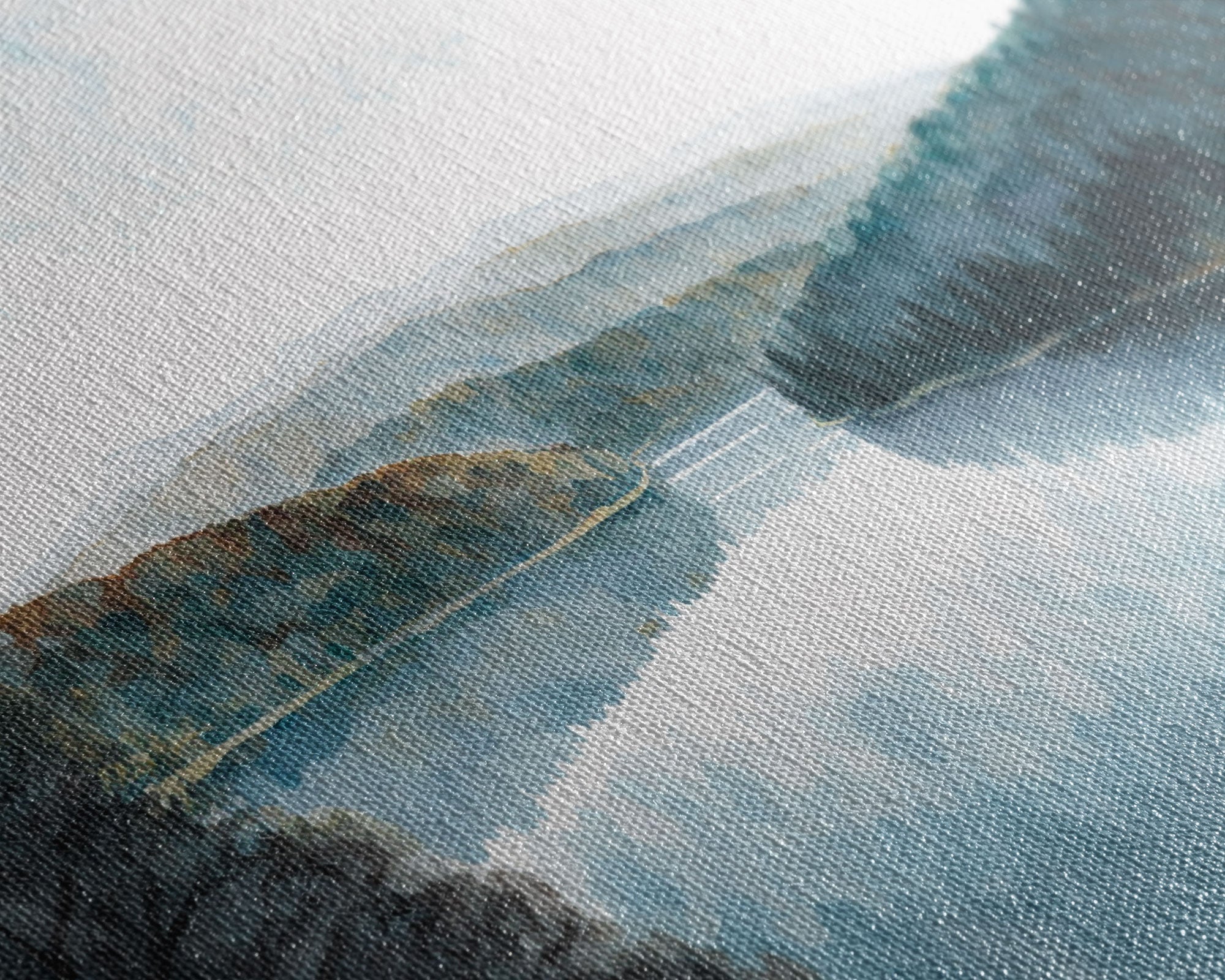Most of our canvases are made in the USA, with the exception of canvases ordered with the light oak unstained frames, and any large canvases (24x48, 30x60, 16x48 and 20x60) ordered WITH a frame. These are temporarily made in and shipped from Europe, while we try to find a more consistent supplier in the USA.