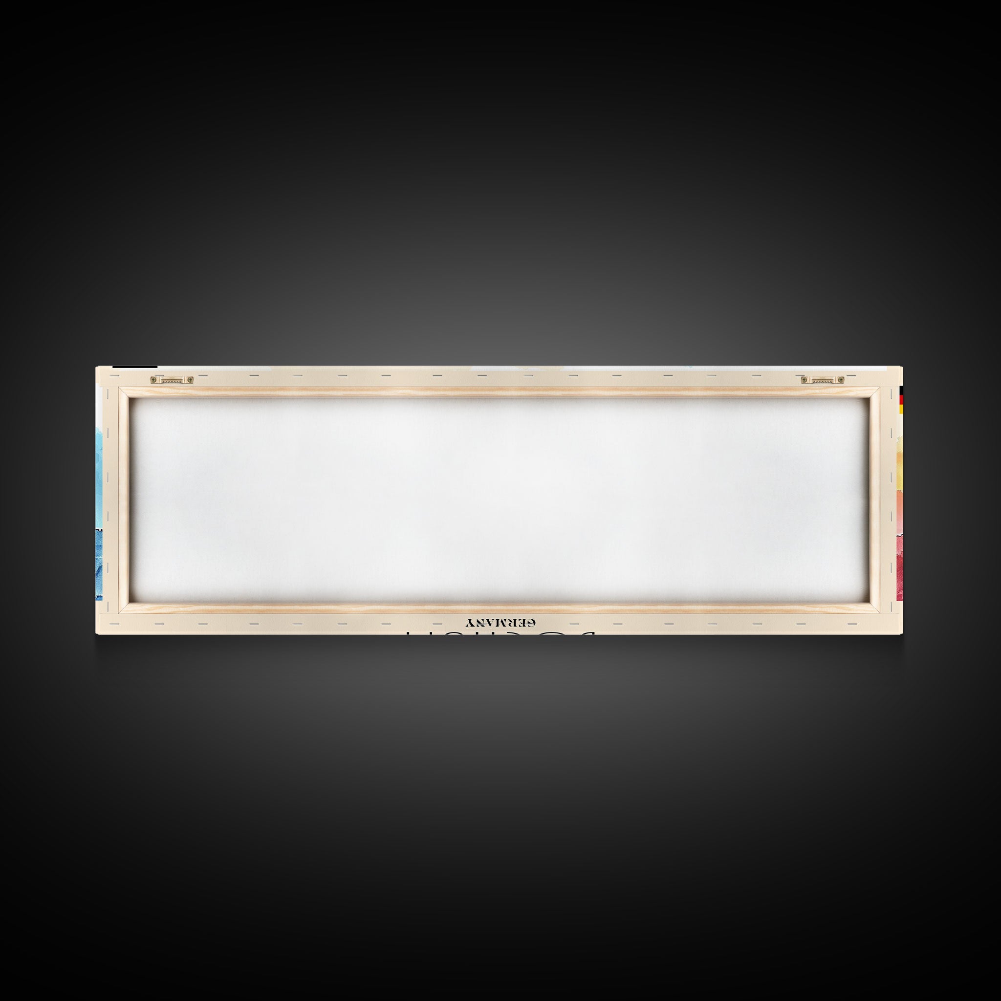 Most of our canvases are made in the USA, with the exception of canvases ordered with the light oak unstained frames, and any large canvases (24x48, 30x60, 16x48 and 20x60) ordered WITH a frame. These are temporarily made in and shipped from Europe, while we try to find a more consistent supplier in the USA.