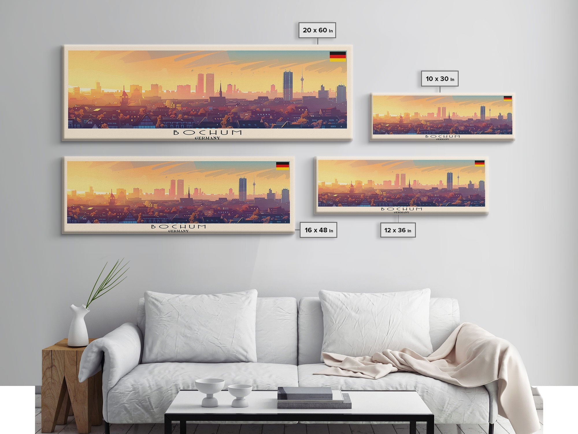 Bochum Germany Panoramic Travel Poster, Framed Canvas Print or Metal Wall Art, Travel Art, Home Decor, Panoramic Painting, Midcentury Art
