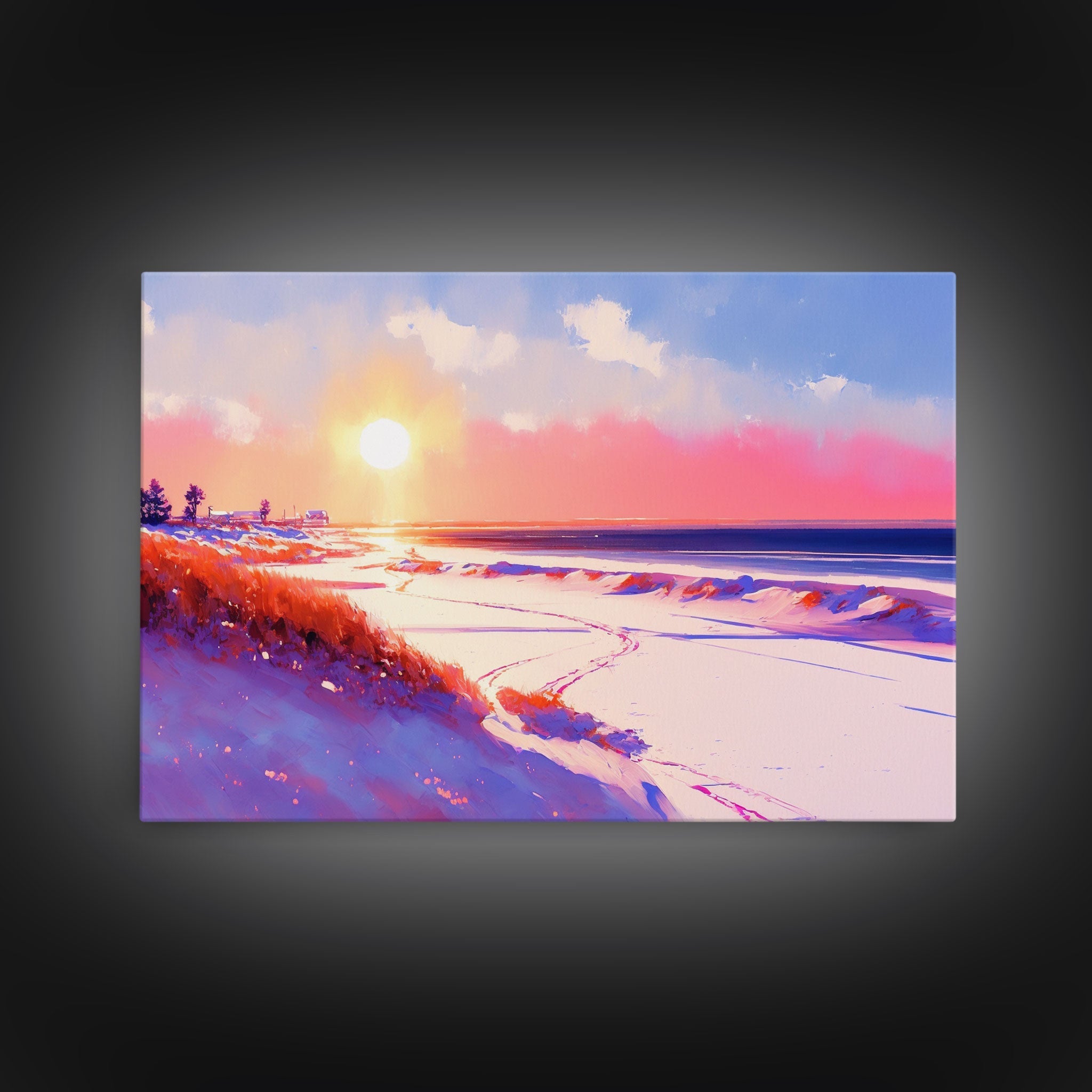 Boho Style Whimsical Beach Art, Framed Canvas Print, Minimalist Modern Farmhouse Decor, Maine Beach Art