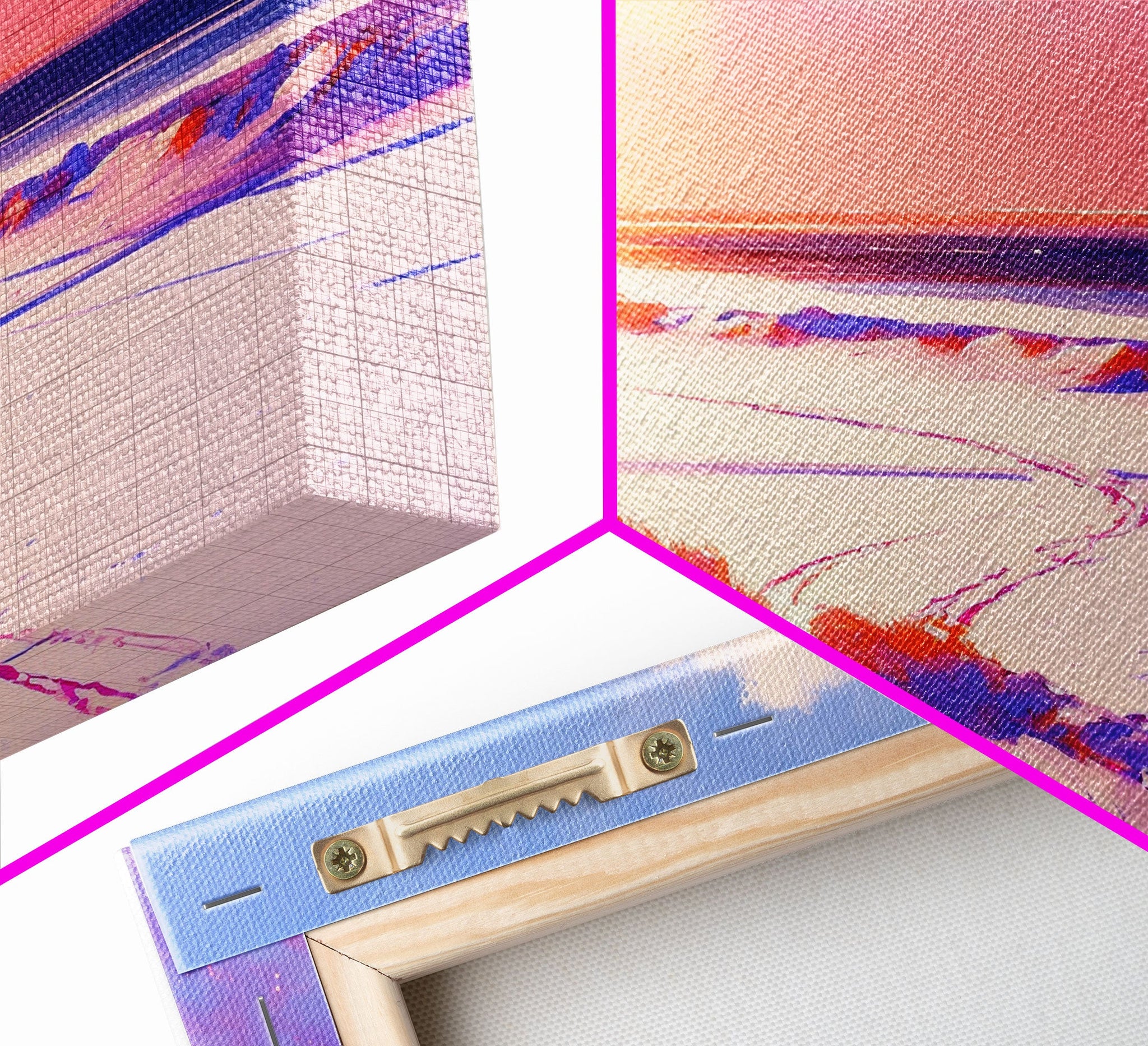 Hello and thank you for taking the time to view our modern high quality giclée artwork! We offer both posters and stretched canvas prints. Our posters are printed on Ultra Matte 60 lb / 230 GSM high quality photo paper, with a thickness of 10 mil. Our canvases are printed on museum grade 350 GSM canvas material with ECO friendly archival grade ink, then hand stretched and stapled over premium, FSC certified and shrink resistant frames. Designed and built to last a lifetime.