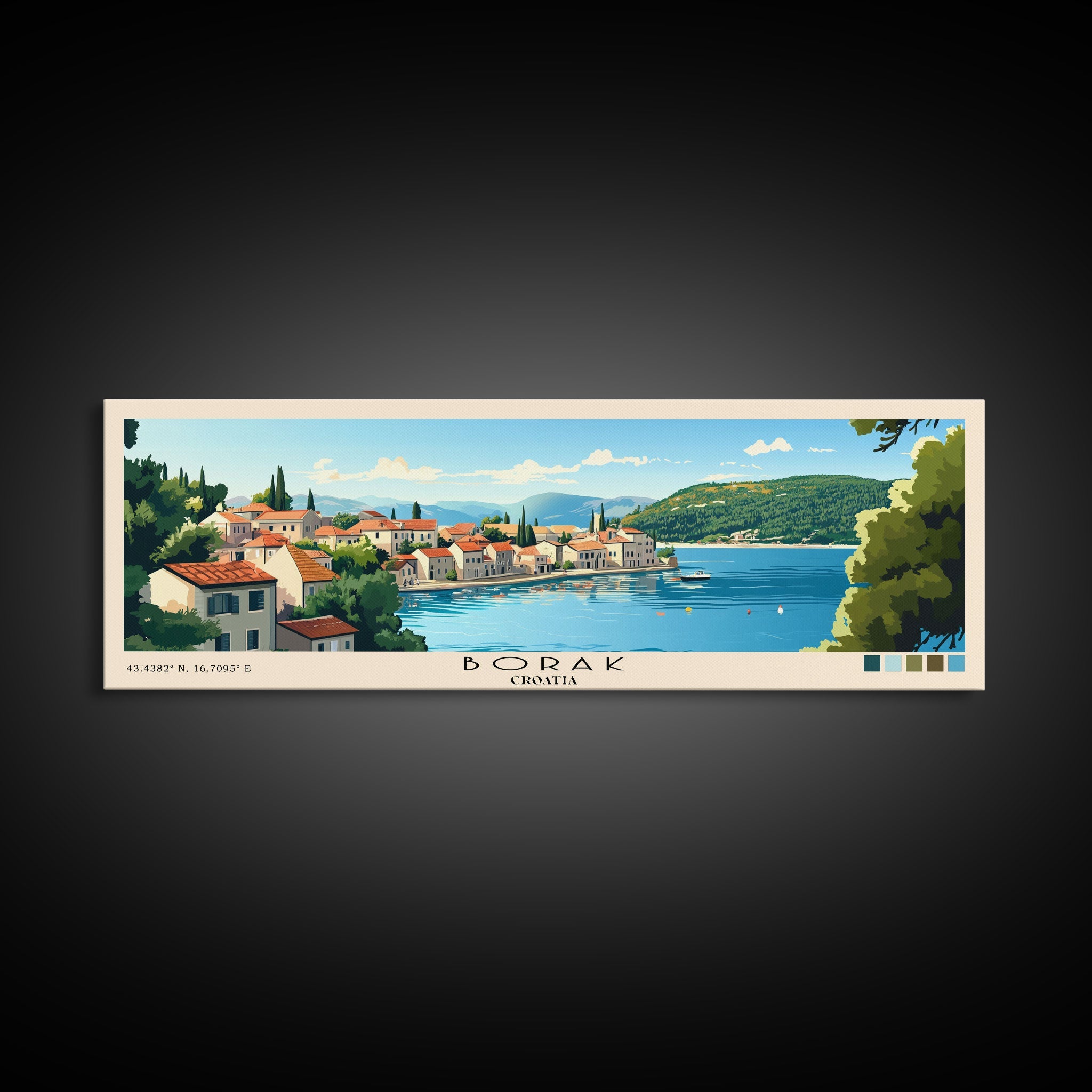 Borak, Croatia Panoramic Beach Print, Vacation Gift, Croatia Wall Art, Framed Canvas Print, Framed Beach Painting
