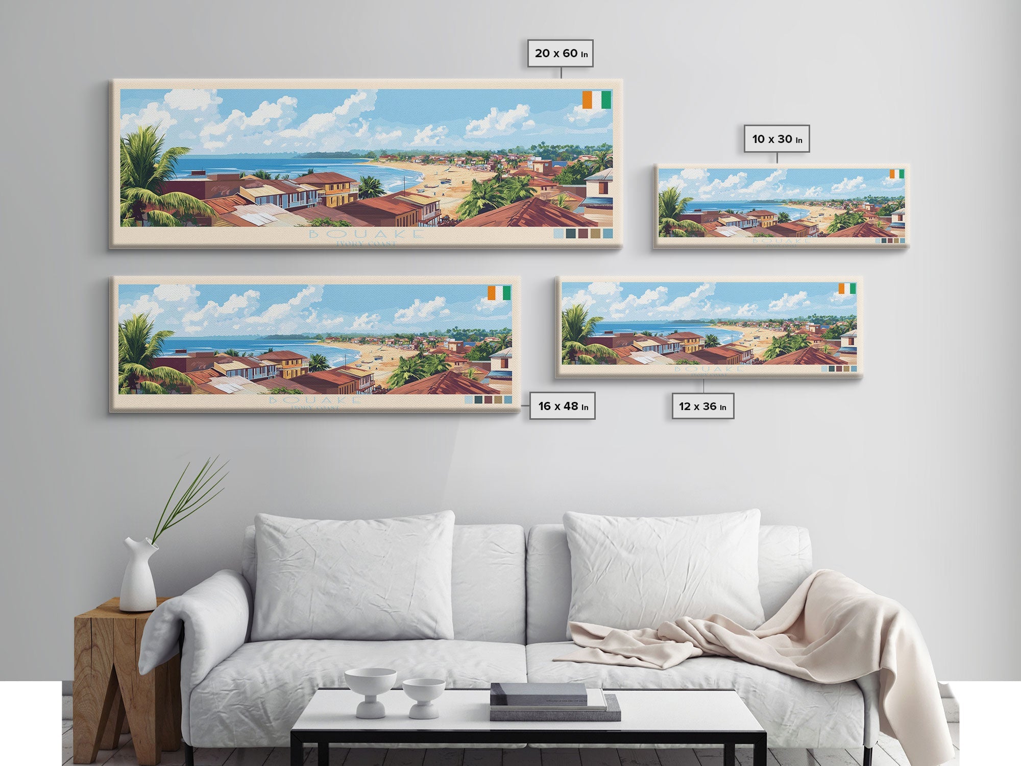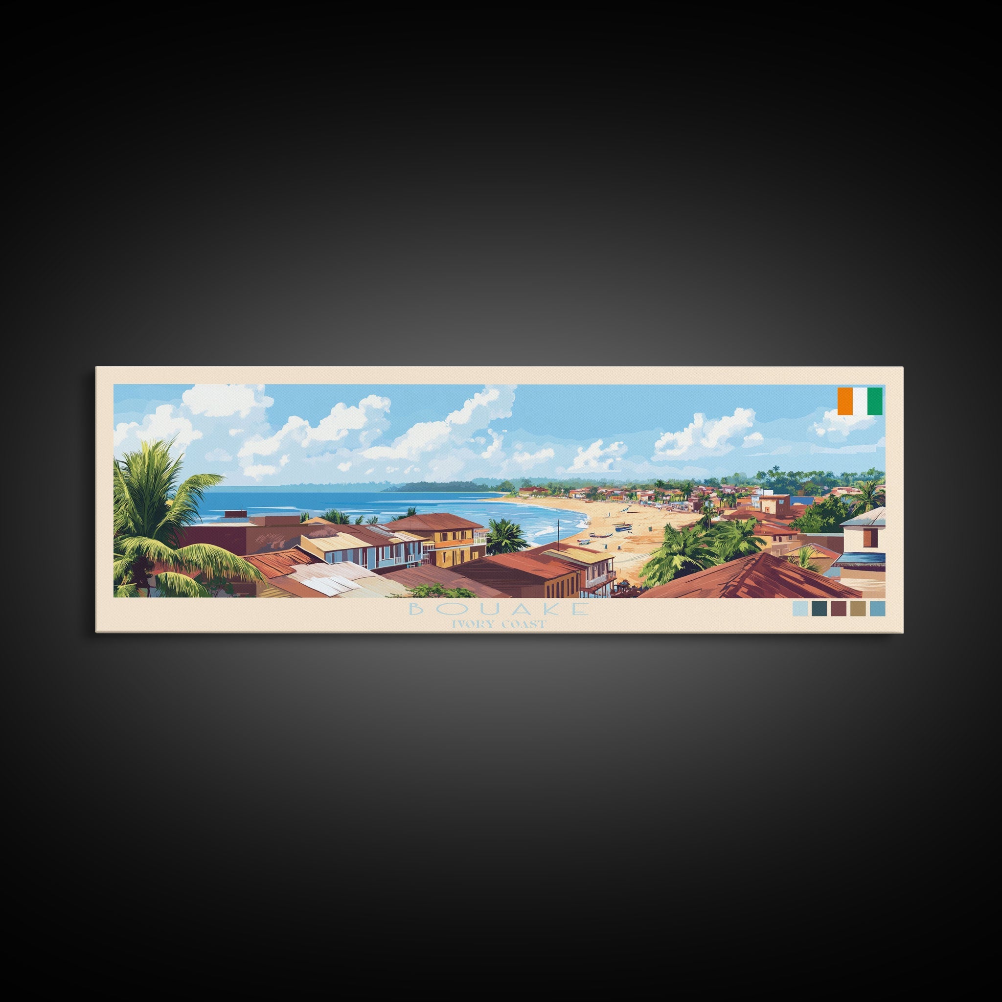Bouake, Ivory Coast Panoramic Travel Poster Canvas Print, Bouake, Ivory Coast Painting, Ivory Coast Art, Bouake Panoramic Travel Art, Travel Painting