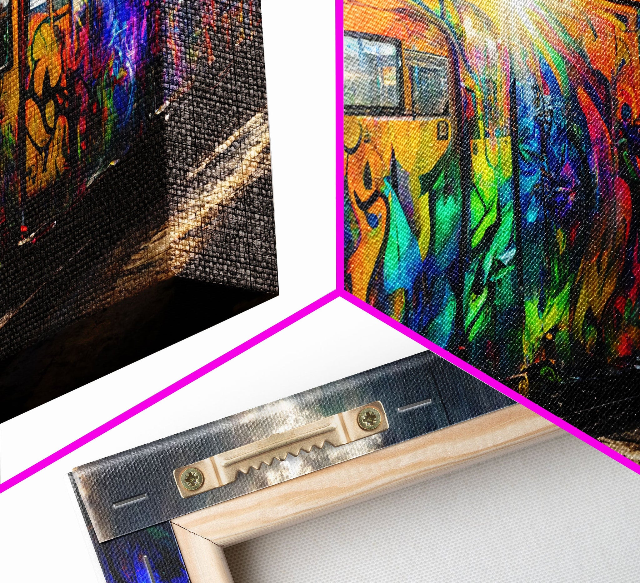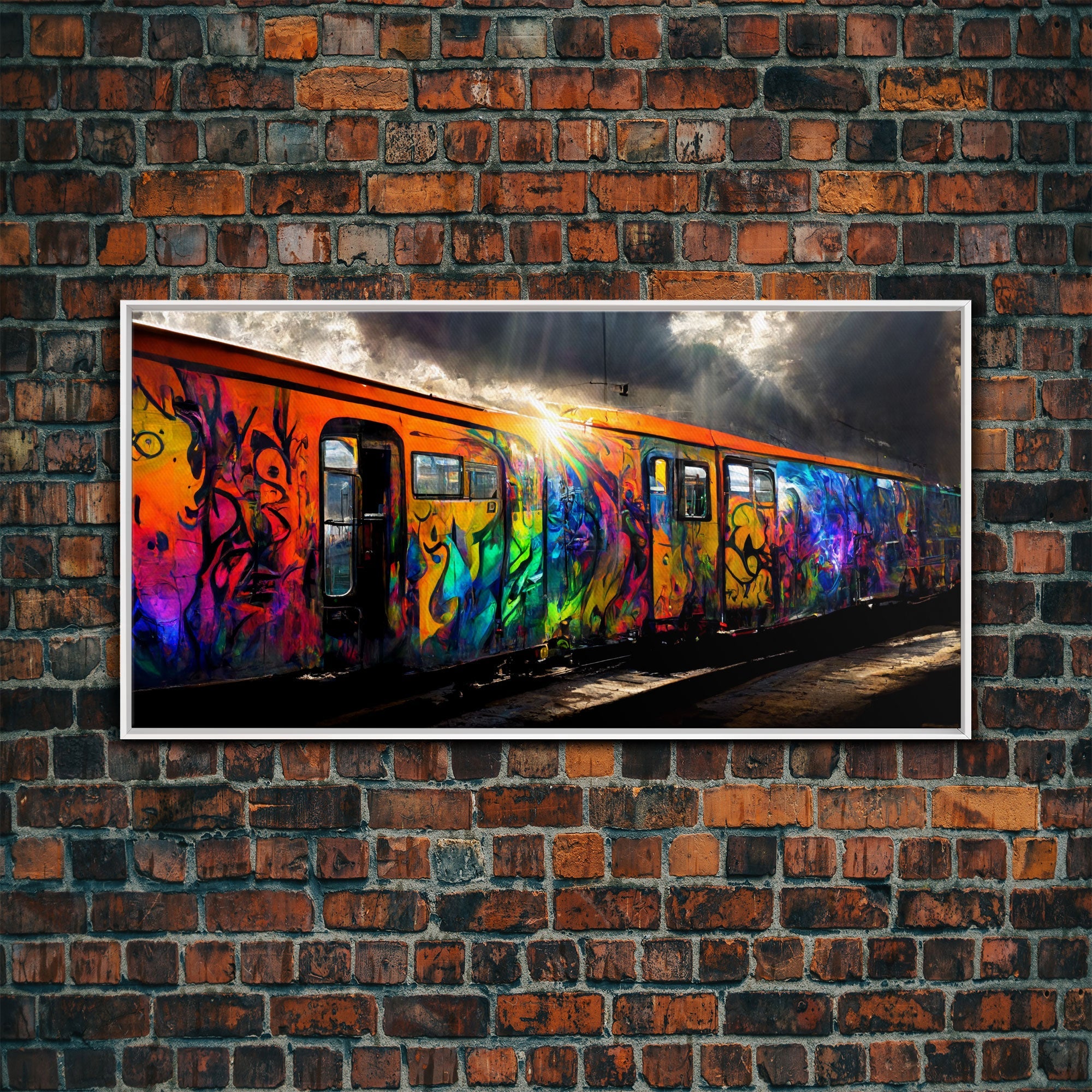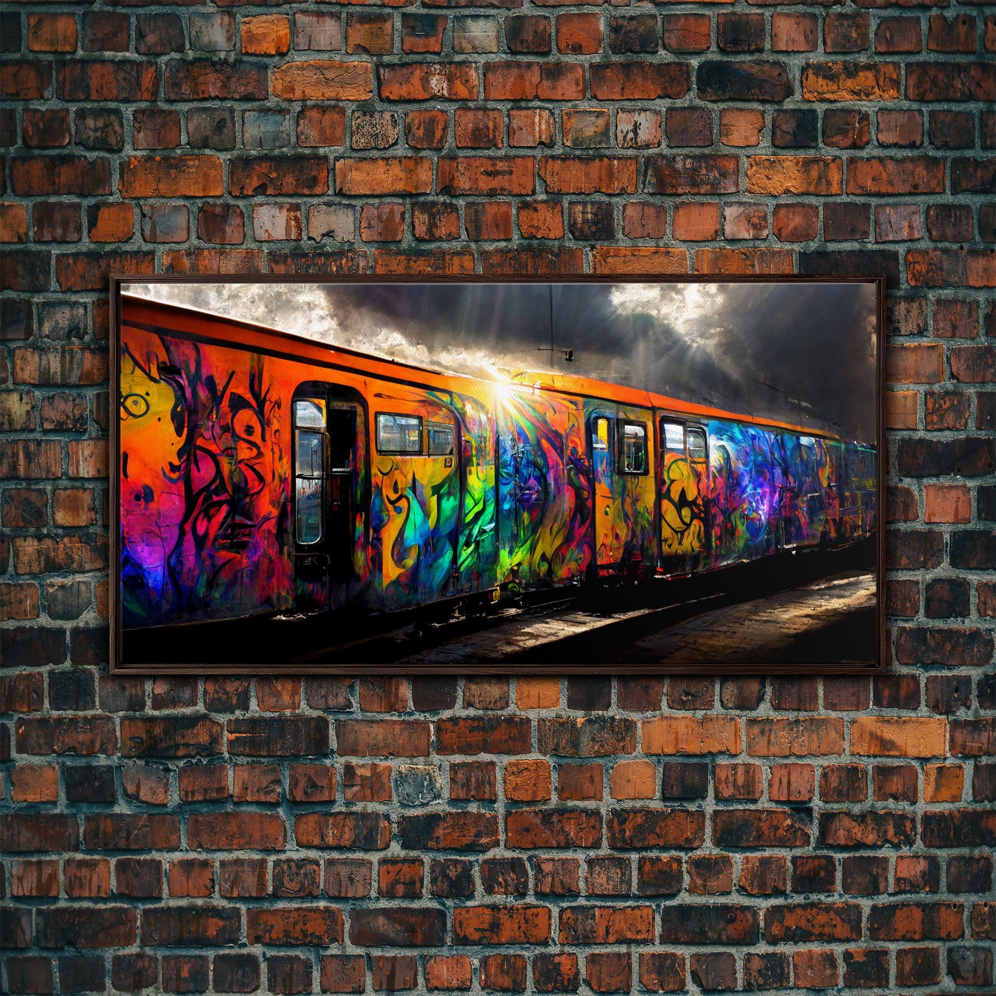 Box car graffiti art, wall decor, train box car, ready to hang canvas print wall art, rainbow train wall art