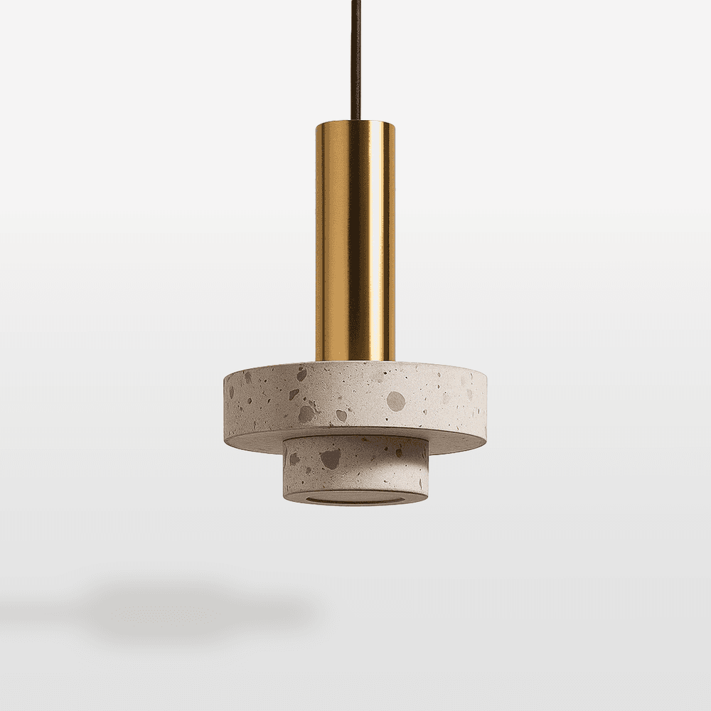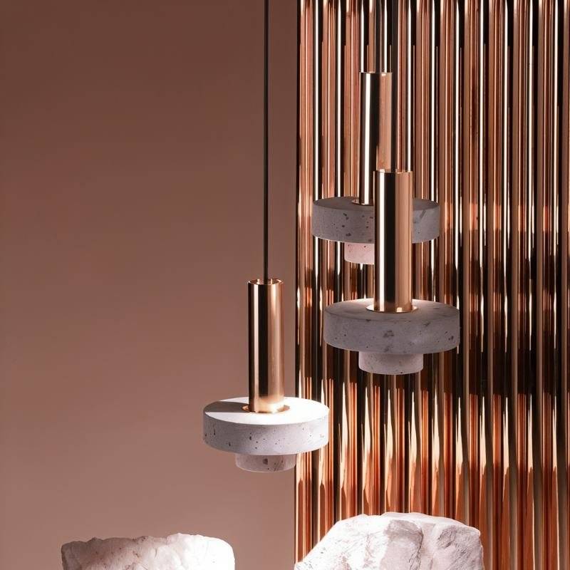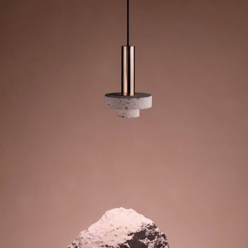 Cielo Pendant Light features a timeless geometrical silhouette composed of two cylindrical components fashioned from pink terrazzo, complemented by an aluminum cylinder in a chrome-plated rose gold finish. Its distinctiveness renders a commanding appeal, and its radiant, warm lighting lends an air of sophistication to any interior. This cutting-edge pendant light allows one to easily introduce an elegant and sophisticated feel to the space.