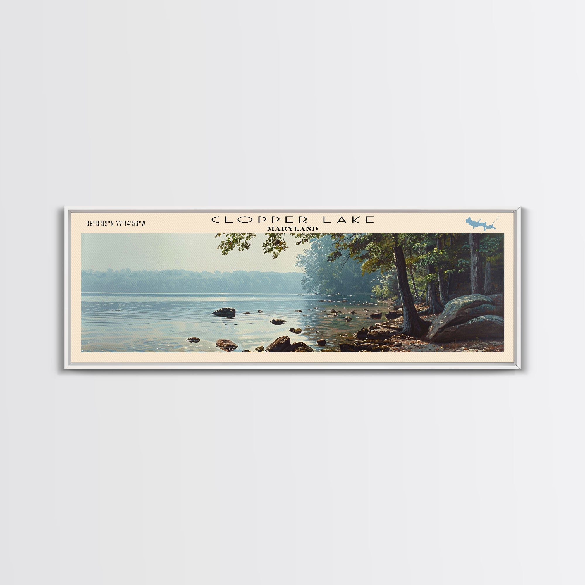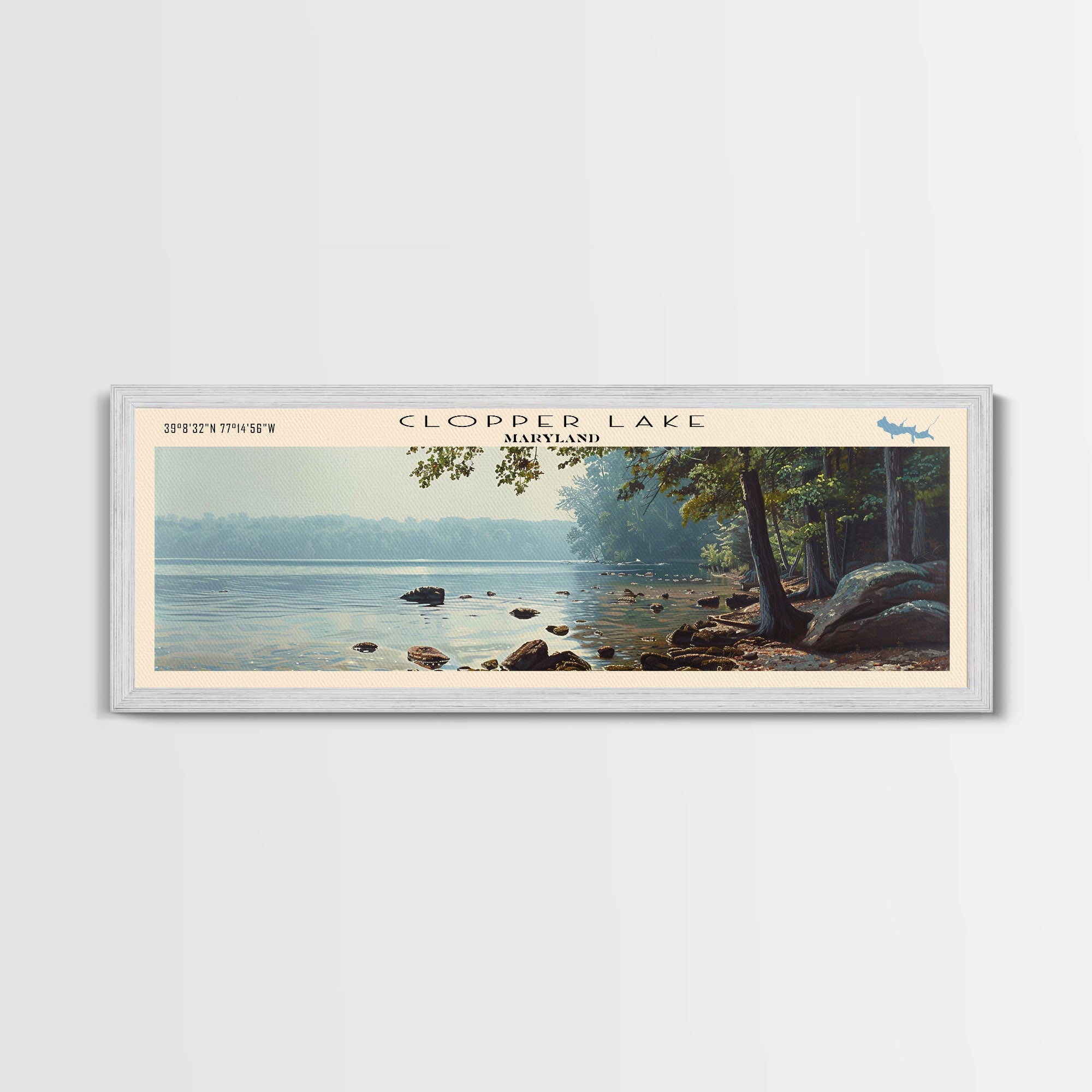 Clopper Lake Maryland Framed Canvas Print, Lake House Art, Panoramic Wide Art, Travel Poster, Minimalist Lake Painting, Home Decor