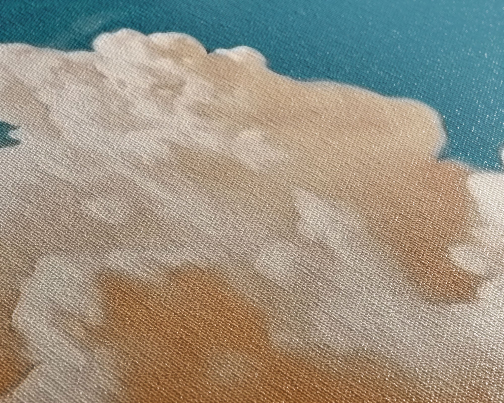 Most of our canvases are made in the USA, with the exception of canvases ordered with the light oak unstained frames, and any large canvases (24x48, 30x60, 16x48 and 20x60) ordered WITH a frame. These are temporarily made in and shipped from Europe, while we try to find a more consistent supplier in the USA.
