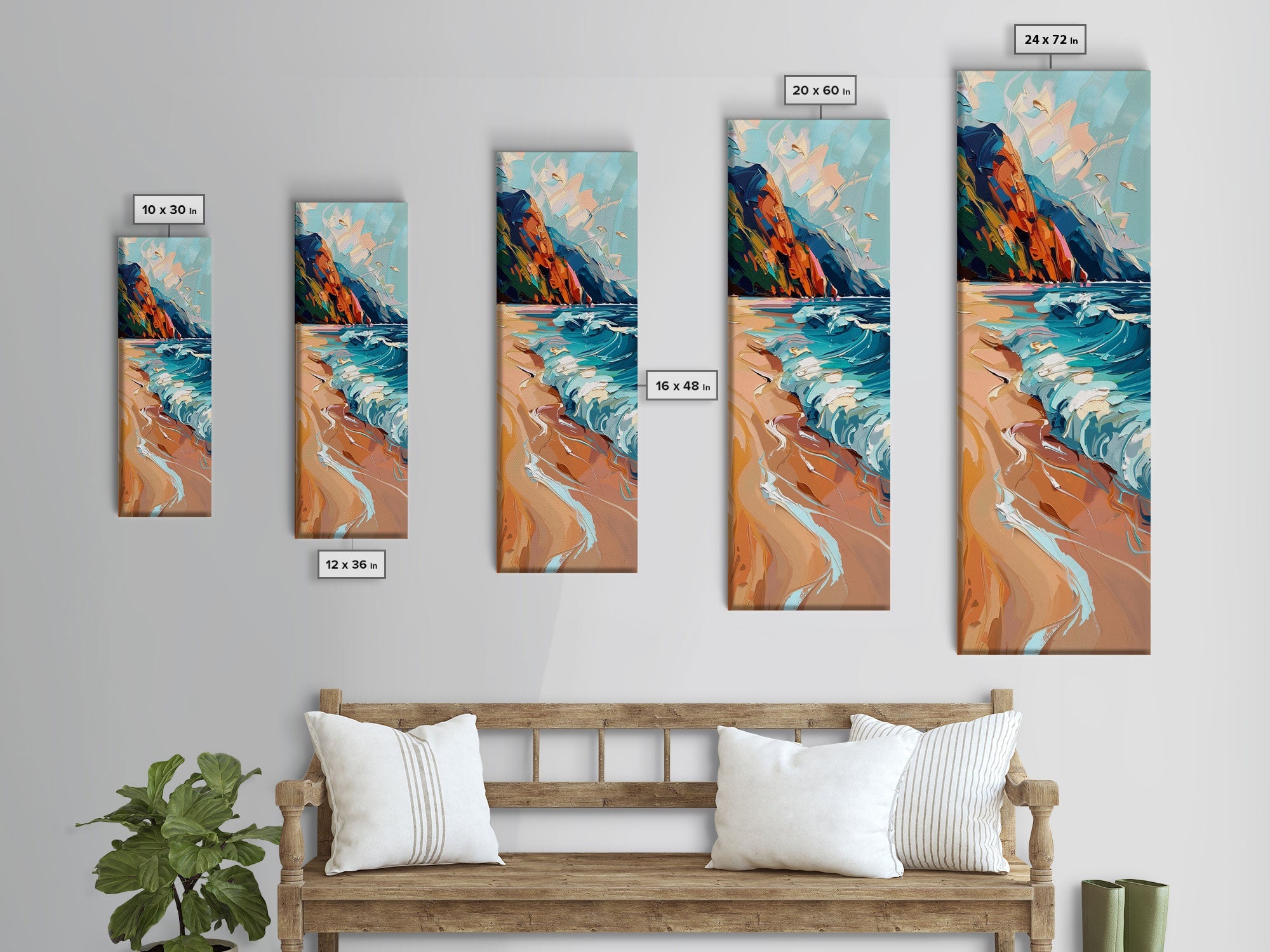 *Optional frames add a total of 1.5 inches to each dimension, for example a 10x20 canvas with a frame will be 11.5 by 21.5 inches total. All framed canvas are 1.5" total depth.