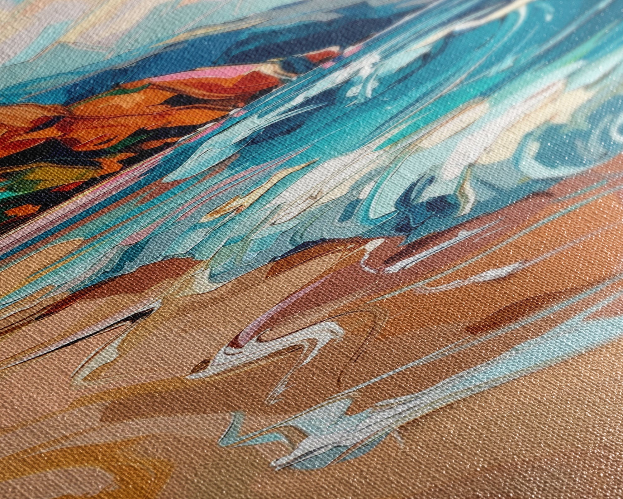 Most of our canvases are made in the USA, with the exception of canvases ordered with the light oak unstained frames, and any large canvases (24x48, 30x60, 16x48 and 20x60) ordered WITH a frame. These are temporarily made in and shipped from Europe, while we try to find a more consistent supplier in the USA.