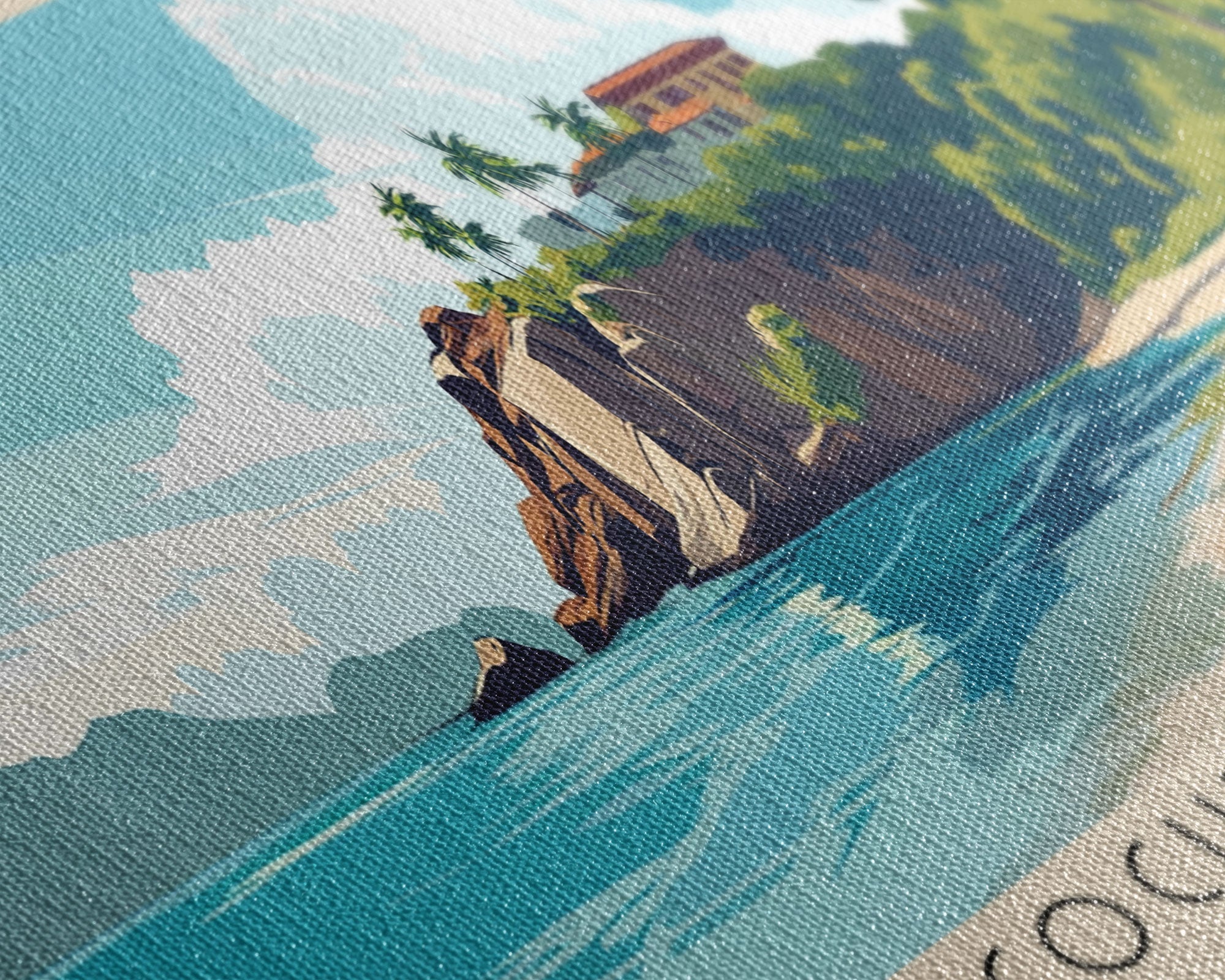 Most of our canvases are made in the USA, with the exception of canvases ordered with the light oak unstained frames, and any large canvases (24x48, 30x60, 16x48 and 20x60) ordered WITH a frame. These are temporarily made in and shipped from Europe, while we try to find a more consistent supplier in the USA.