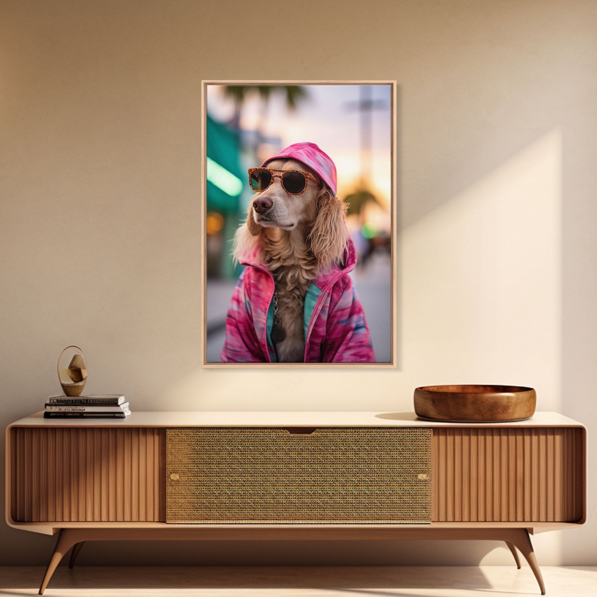 Cocker Spaniel In Sunglasses Pink Shirt Wall Print, Dog Portrait, Dog Art Print, Framed Wall Art, Framed Canvas, Wall Print, Wall Canvas