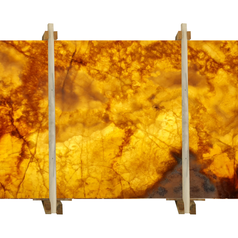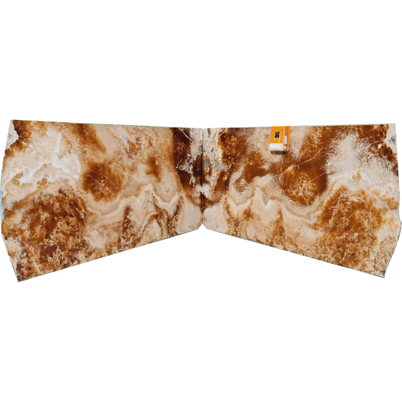 Cola Honey Onyx Translucent Bookmatching Slabs Polished is available in 2cm(=3/4") or 3cm(=1 1/4") thick.