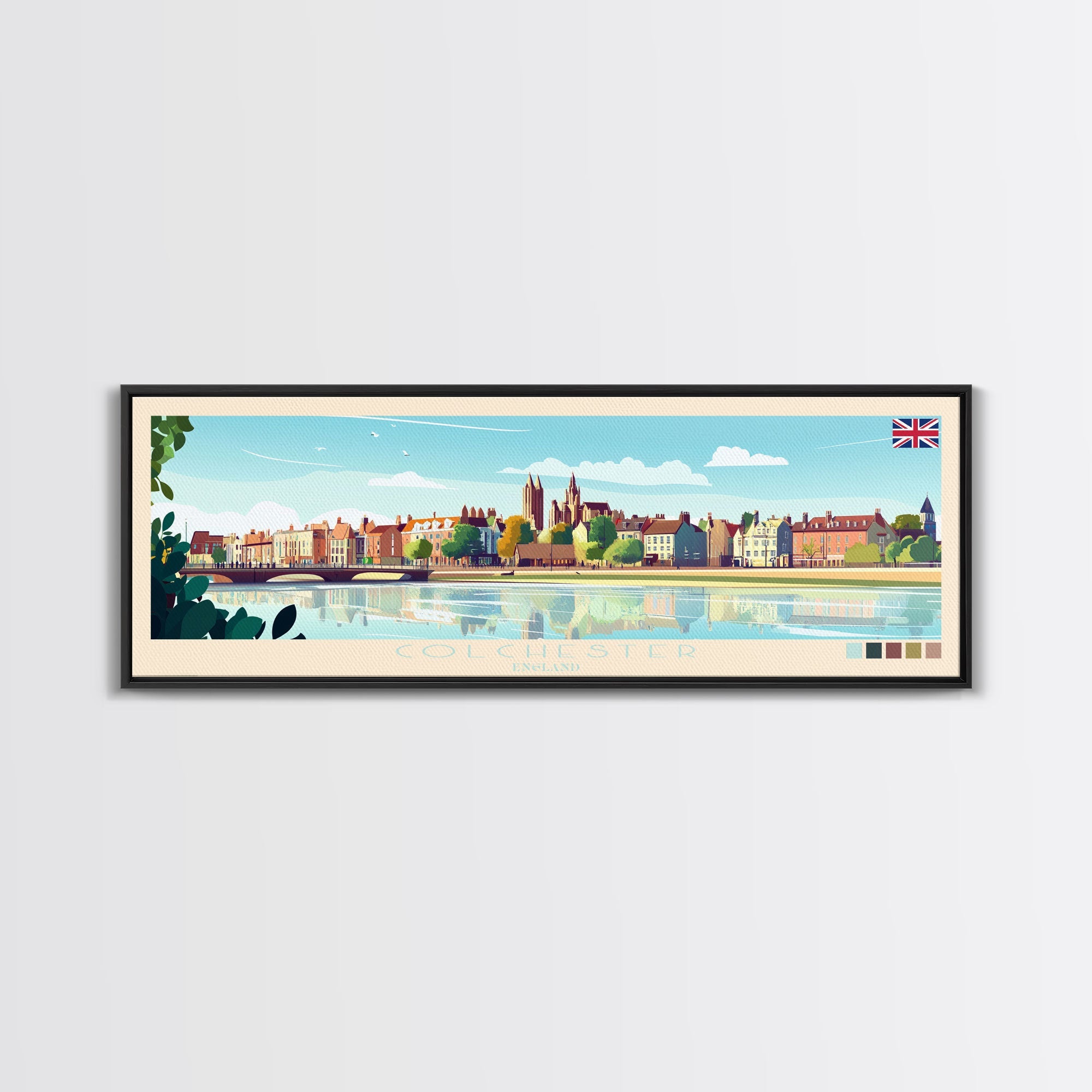Colchester, England Travel Poster Panoramic Canvas Print, Colchester, England Painting, England Art, Colchester Travel Art, Guest Room Painting