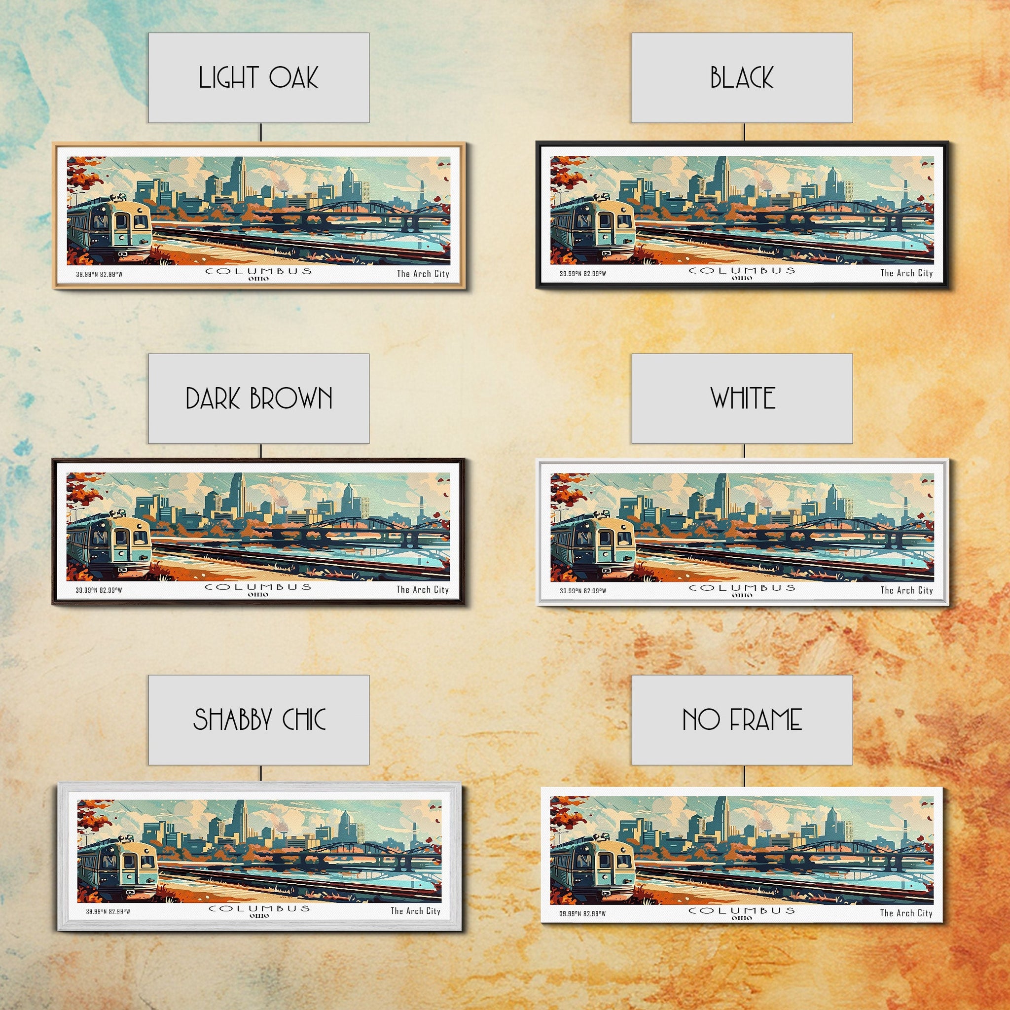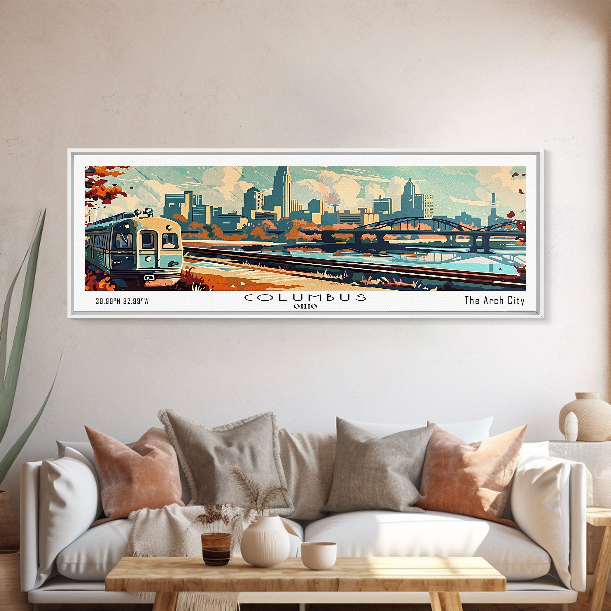 Columbus Ohio Panoramic Painting, Mid Century Modern Framed Canvas Print, Retro Pop Art Travel Poster, Wall Art, Home Decor, Office Art, Gift Idea