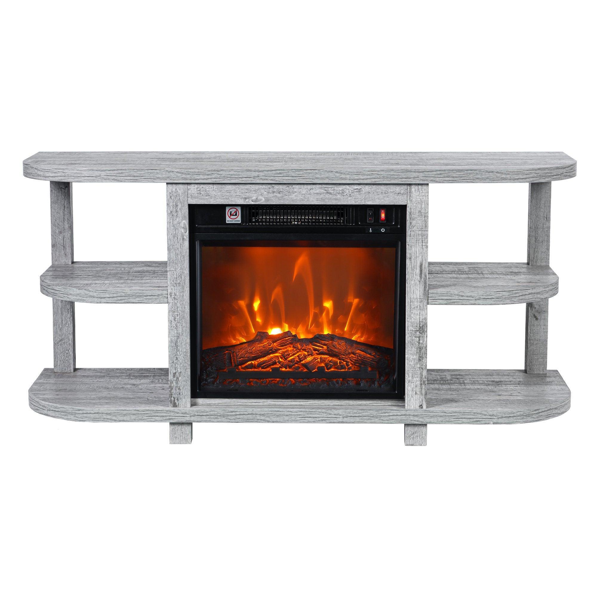 This stylish three-tier 48" TV stand is not only a sophisticated solution for your entertainment needs, but also a space-saving one. Besides its sleek and modern aesthetic, it features an innovative fireplace insert that injects a soothing, welcoming vibe into your living area. The stand offers three spacious shelves, ensuring you have ample space for all your entertainment essentials. It's perfect for compact spaces, seamlessly combining functionality with contemporary design.