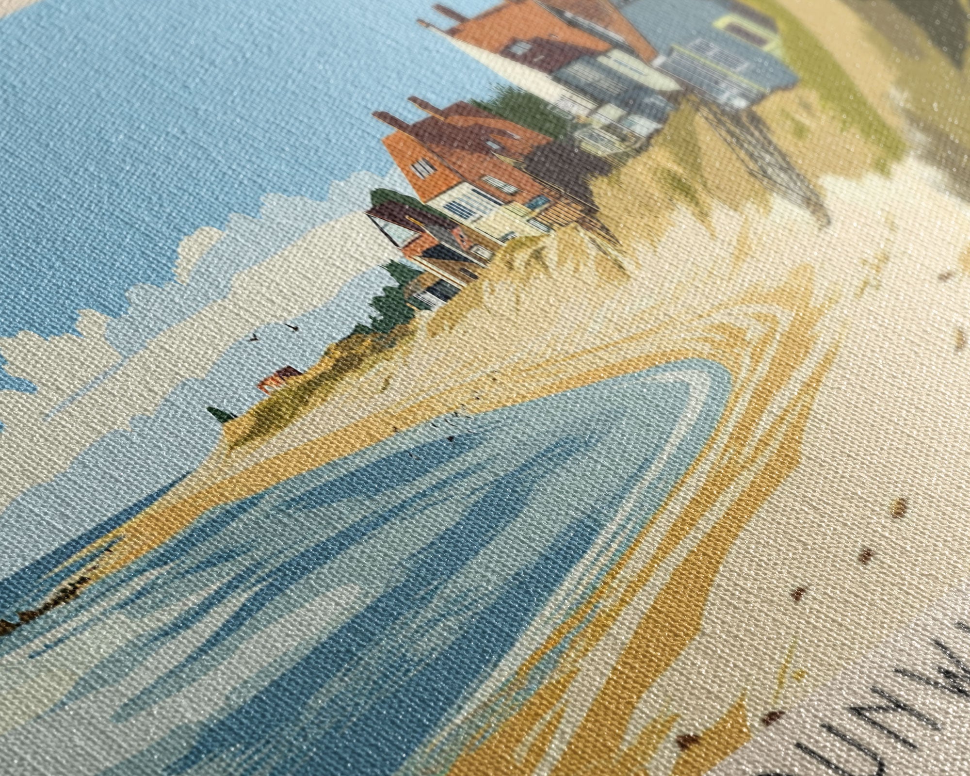 Most of our canvases are made in the USA, with the exception of canvases ordered with the light oak unstained frames, and any large canvases (24x48, 30x60, 16x48 and 20x60) ordered WITH a frame. These are temporarily made in and shipped from Europe, while we try to find a more consistent supplier in the USA.