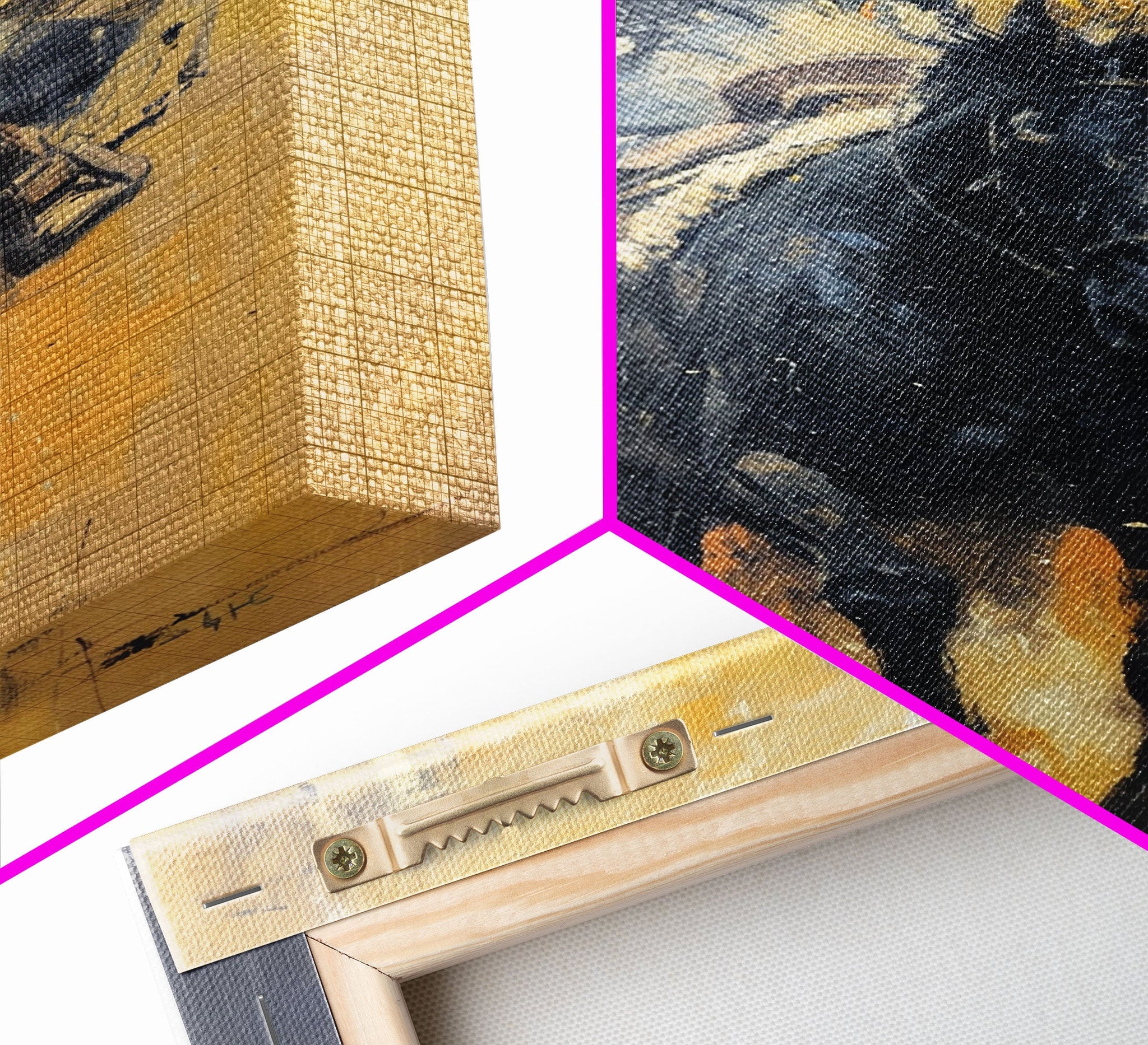 Dynamic Cowboy on Horseback Framed Canvas Print - Energetic Western Decor, Action Wall Art for Living Room, Bedroom