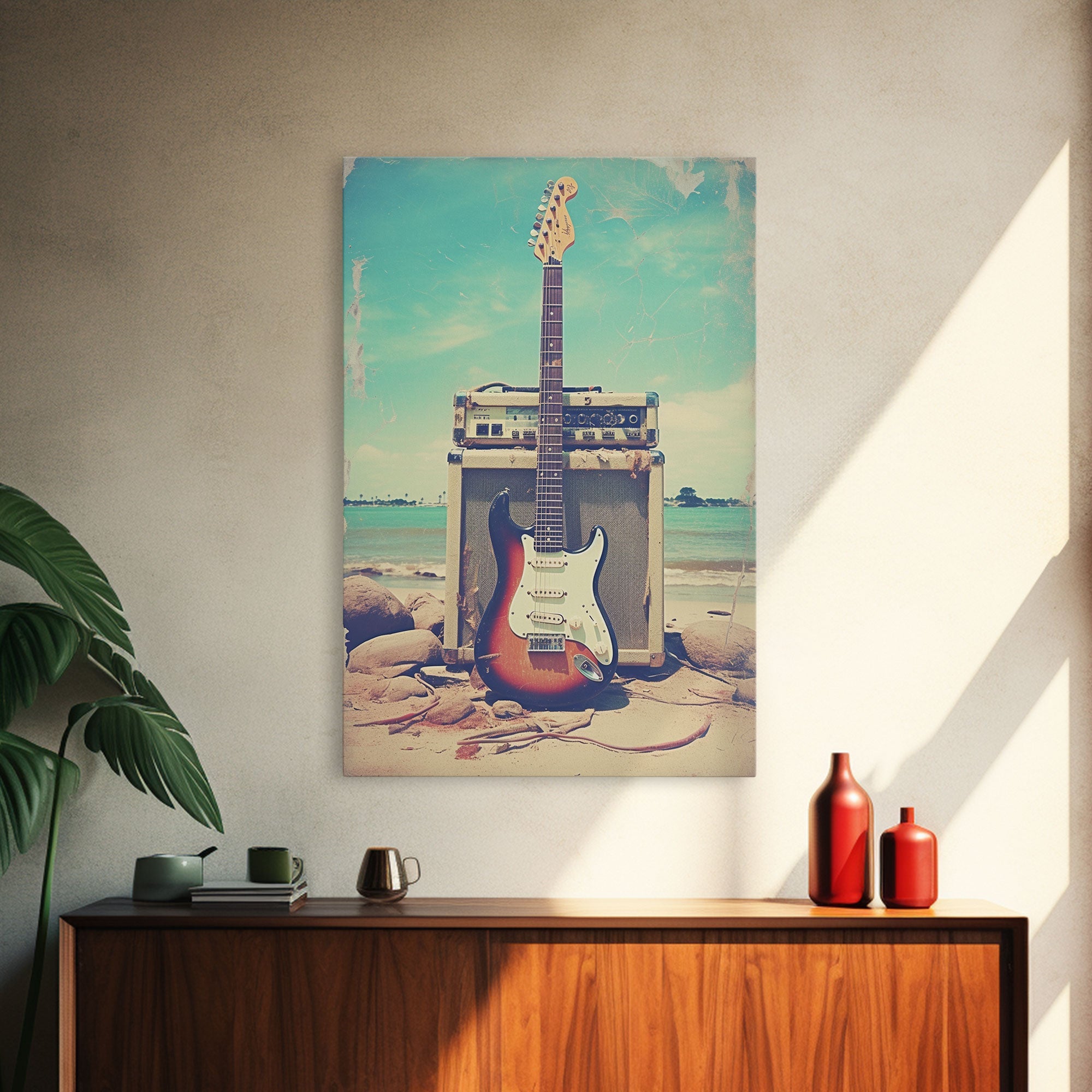 Electric Guitar, Guitar Wall Art, Music Wall Art, Canvas Print, Wall Hanging, Portrait Art, Guitar Player Gift, Music Wall Decor, Beach Art