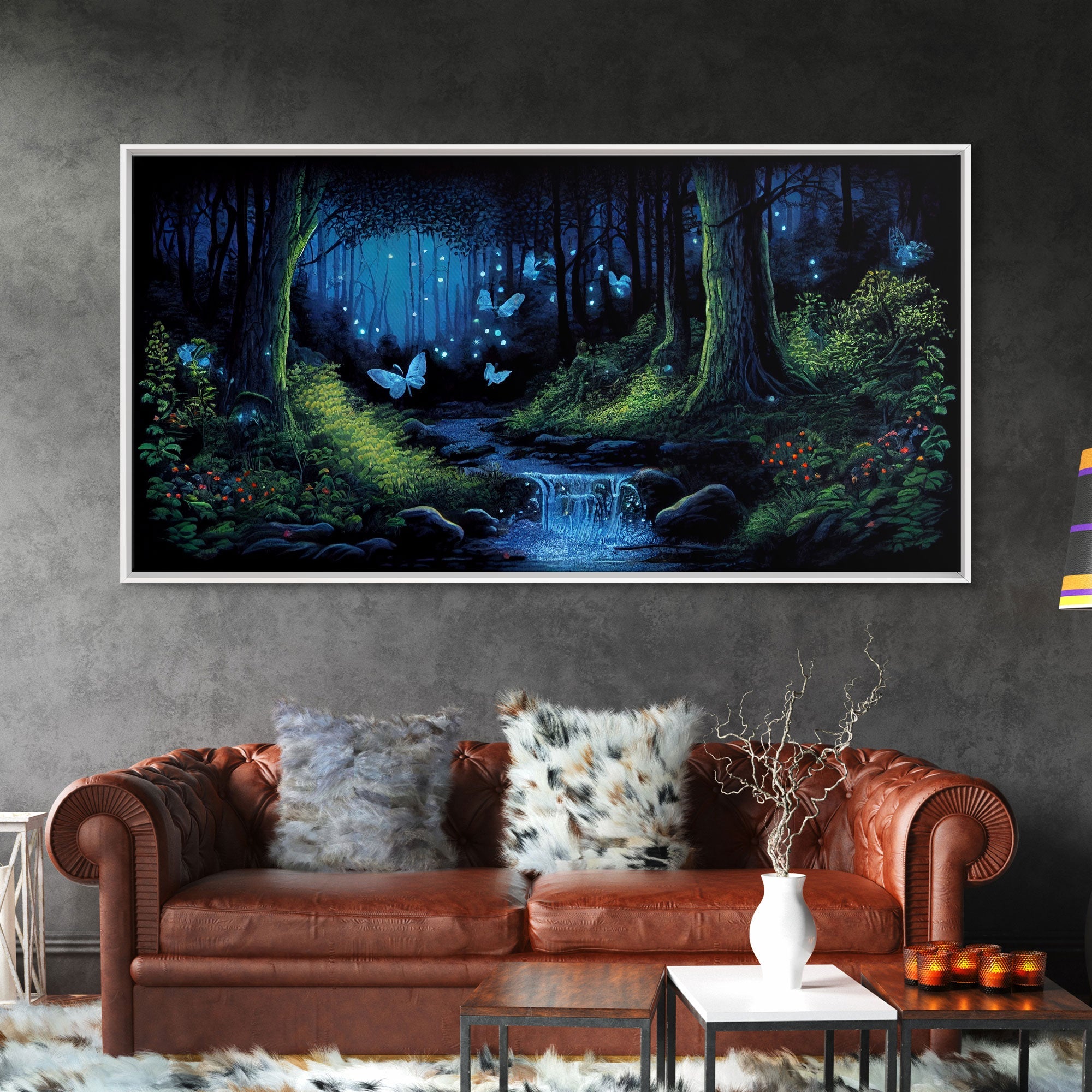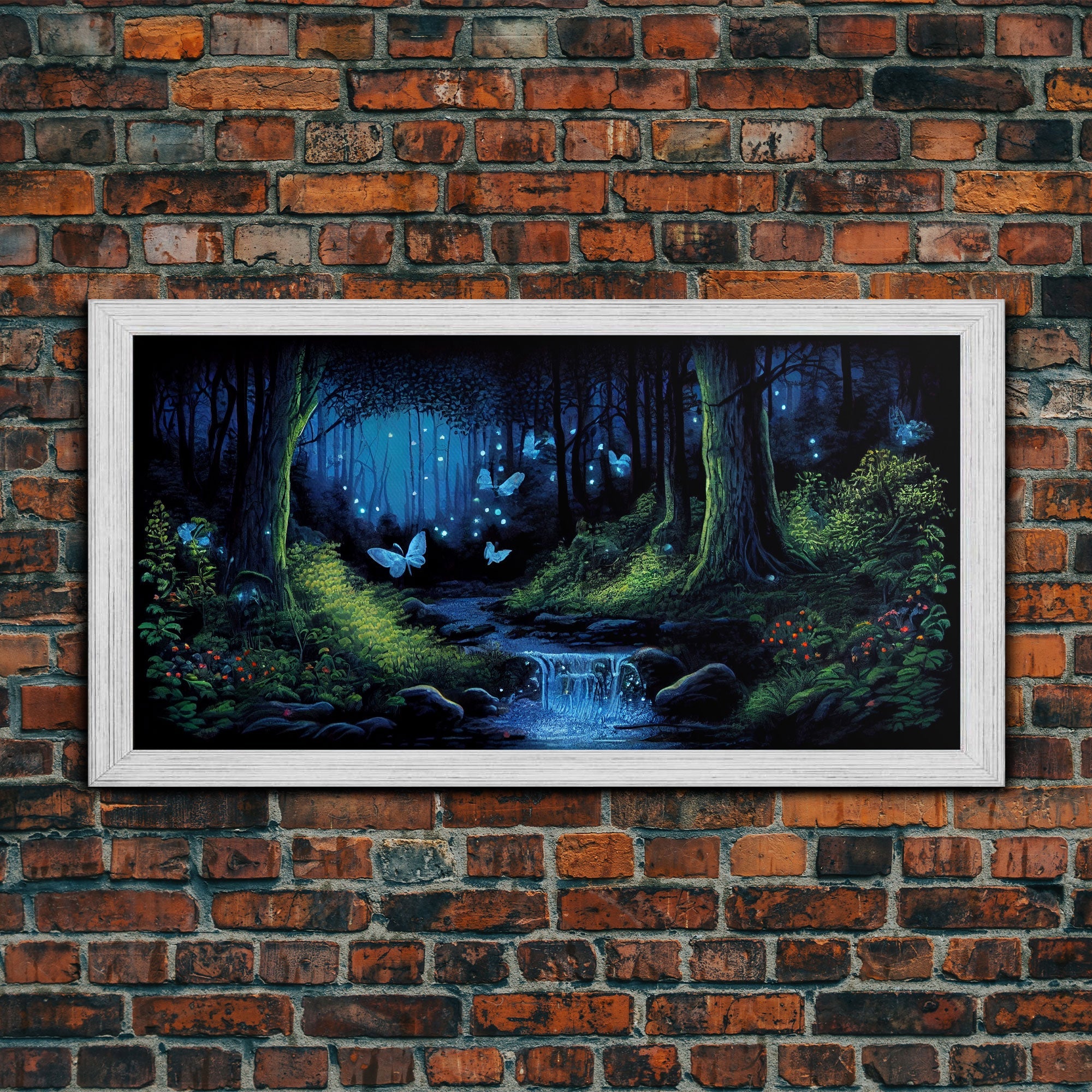 Enchanted Forest Painting, Fantasy Art, Fairy House, Fantasy, Woodland Decor, Woods, Forest, Fairy Forest with Blue Butterflies