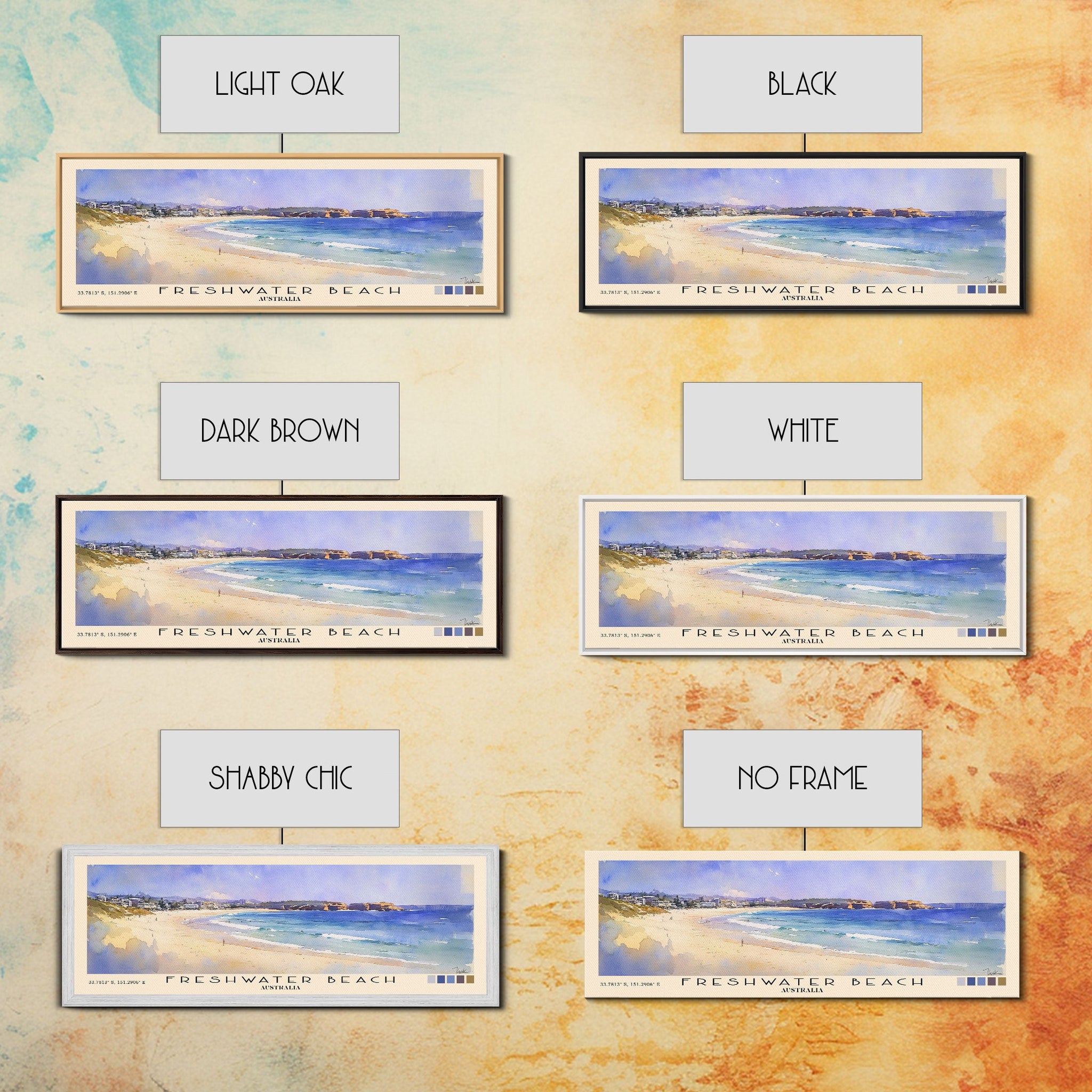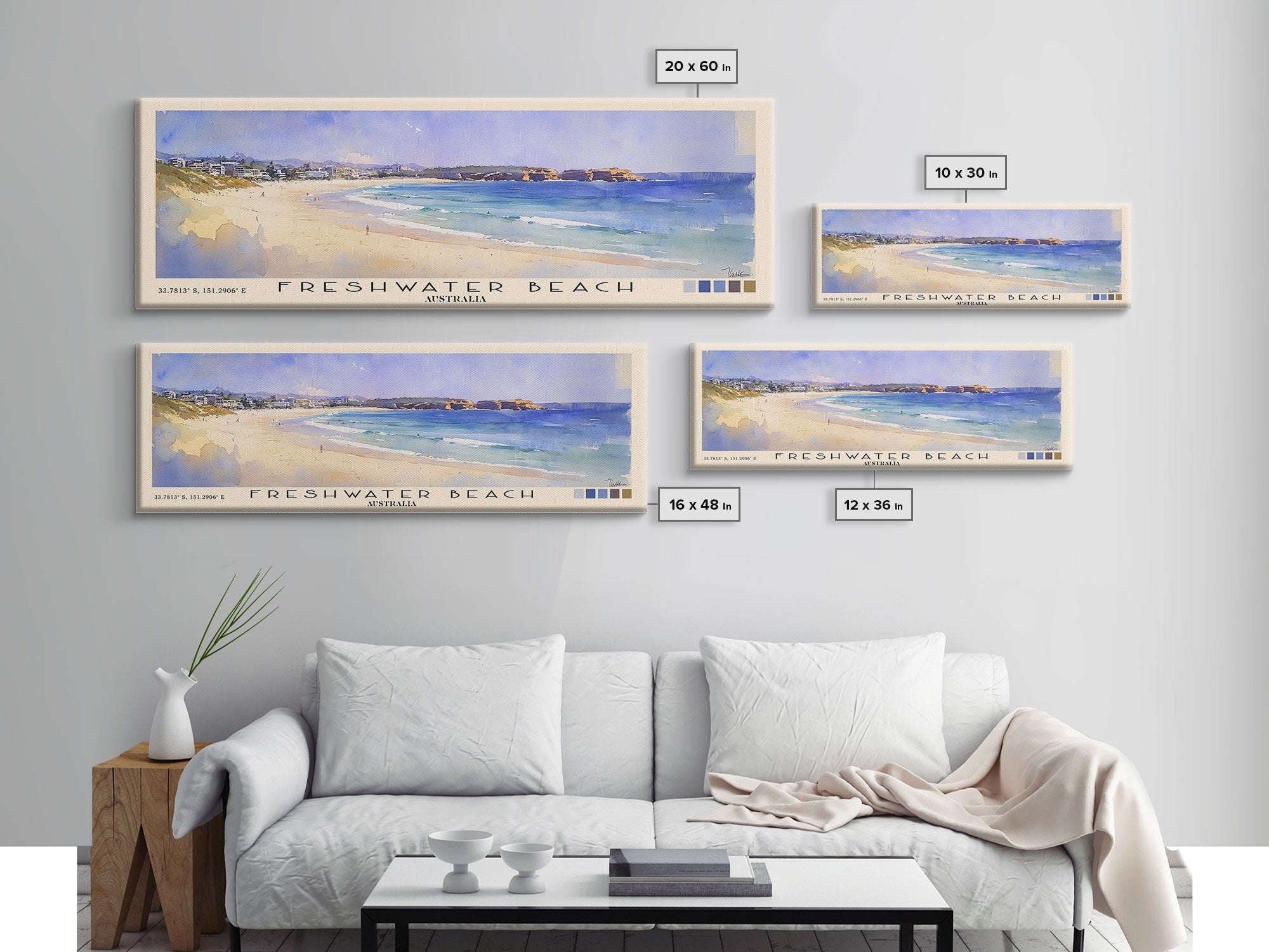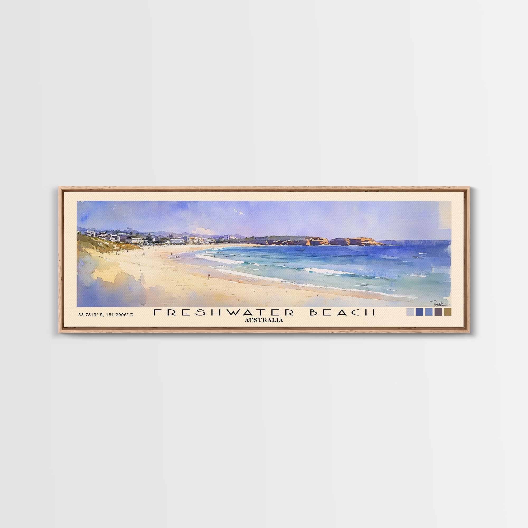 Freshwater Beach, Australia Watercolor Beach Print, Vacation Gift, Australia Wall Art, Framed Canvas Print, Framed Beach Painting