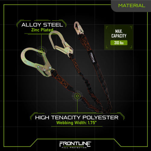 Frontline LIS62R Combat Twin Leg 6' Rebar Hook Lanyard with Internal Shock Absorber